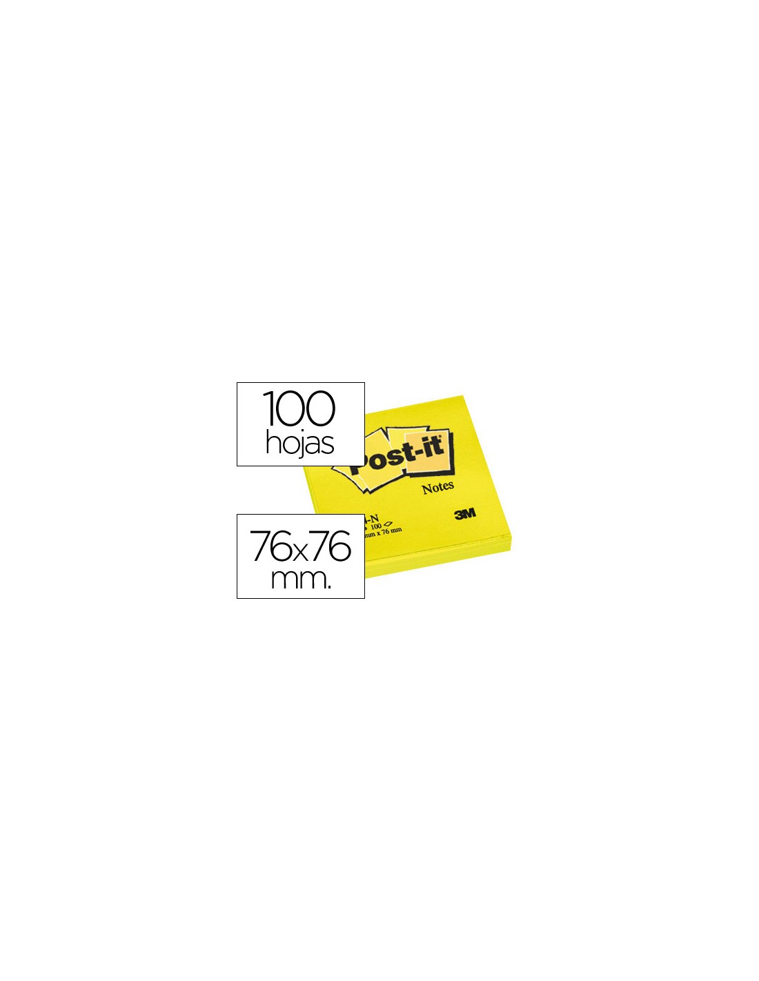 Bloc de notas adhesivas quita y pon post-it 76x76 mm amarillo neon con 100 hojas