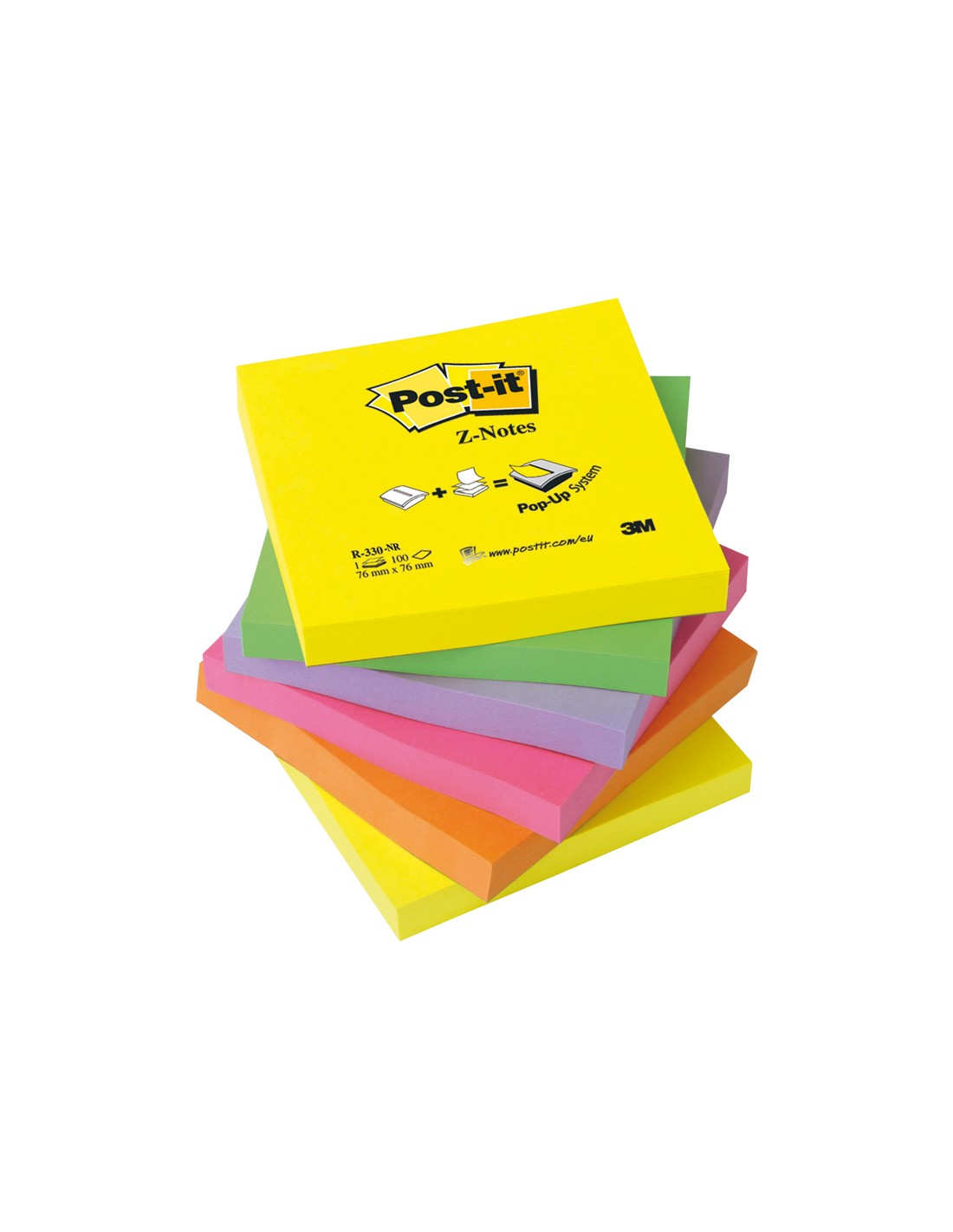 Bloc de notas adhesivas quita y pon post-it 76x76 mm z-notesultra intenso pack de 6 blocs surtido