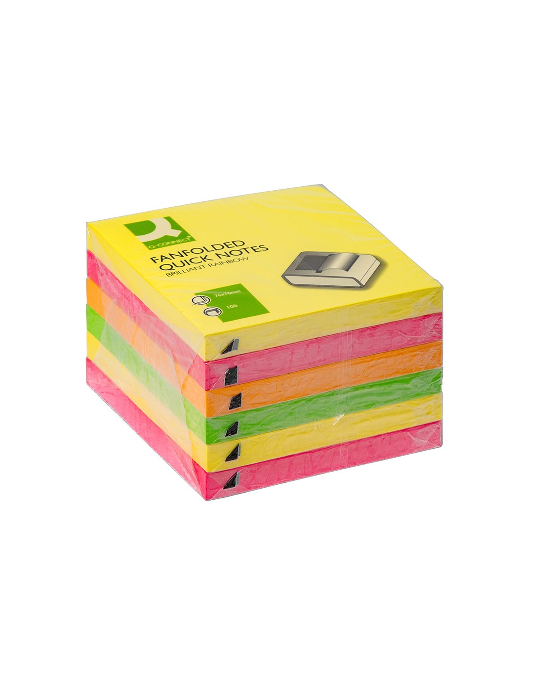 Bloc de notas adhesivas quita y pon q-connect 76x76 mm colores neon surtidos zig-zag