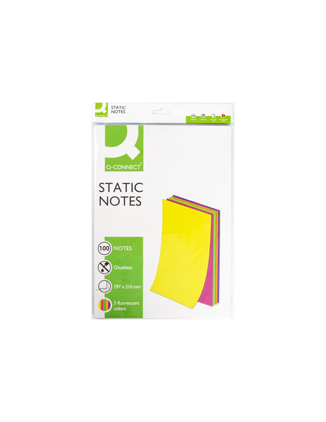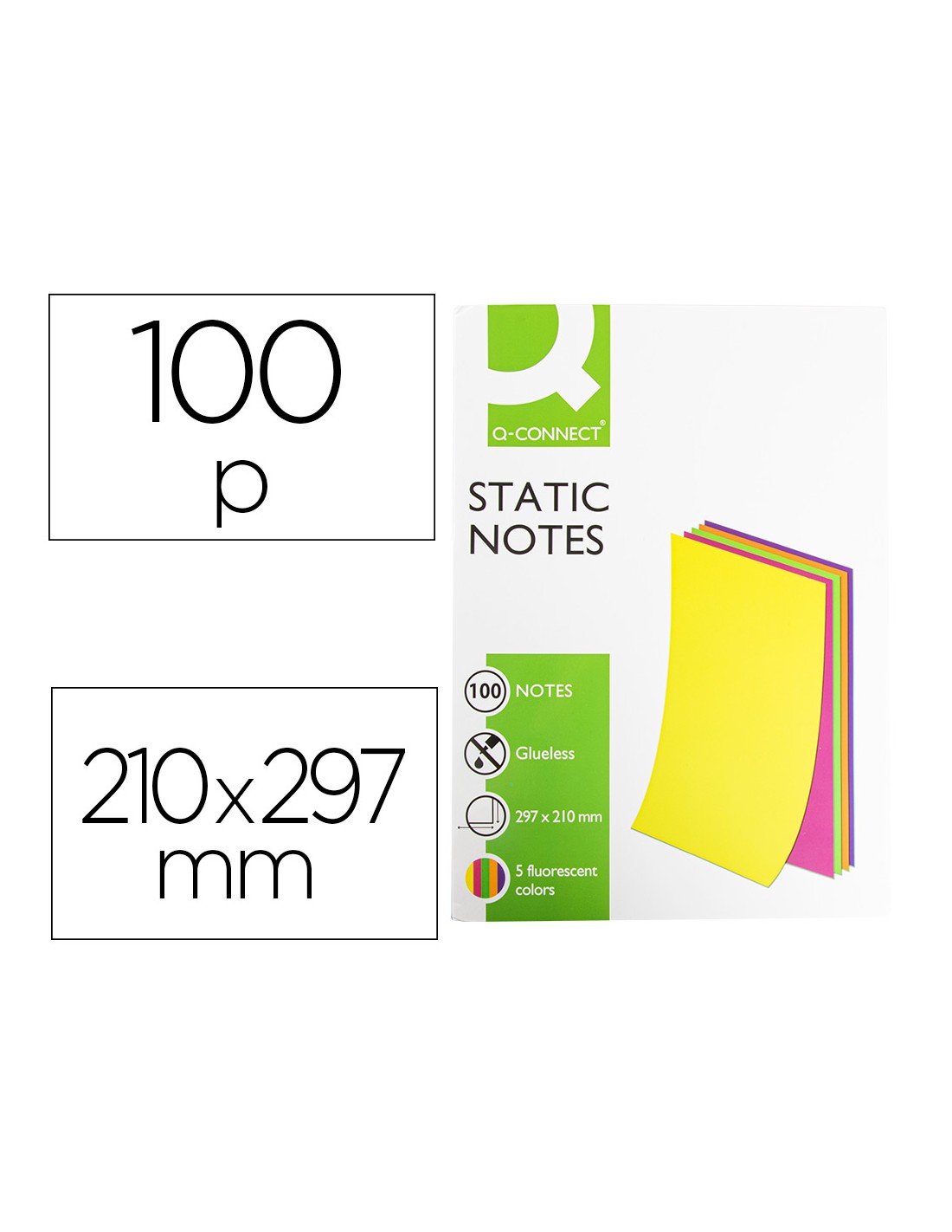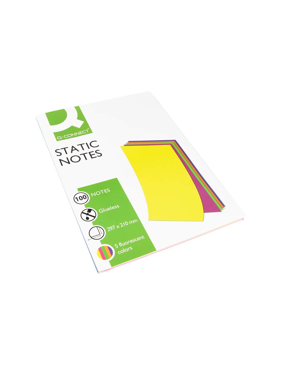 Bloc de notas electrostaticas quita y pon q-connect 210x297mm 100 hojas 5 colores fluorescentes