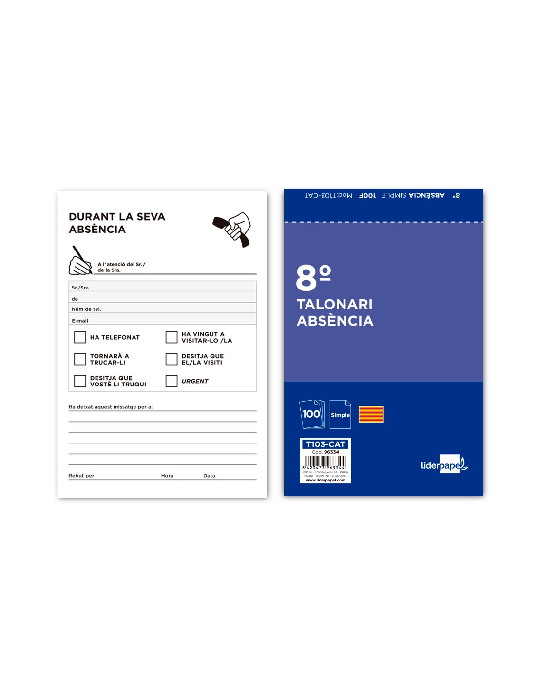 Talonario liderpapel ausentes octavo original t103 texto en catalan