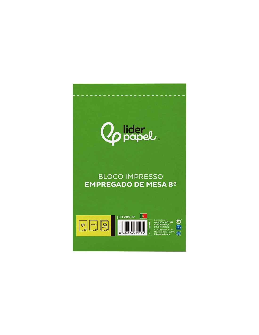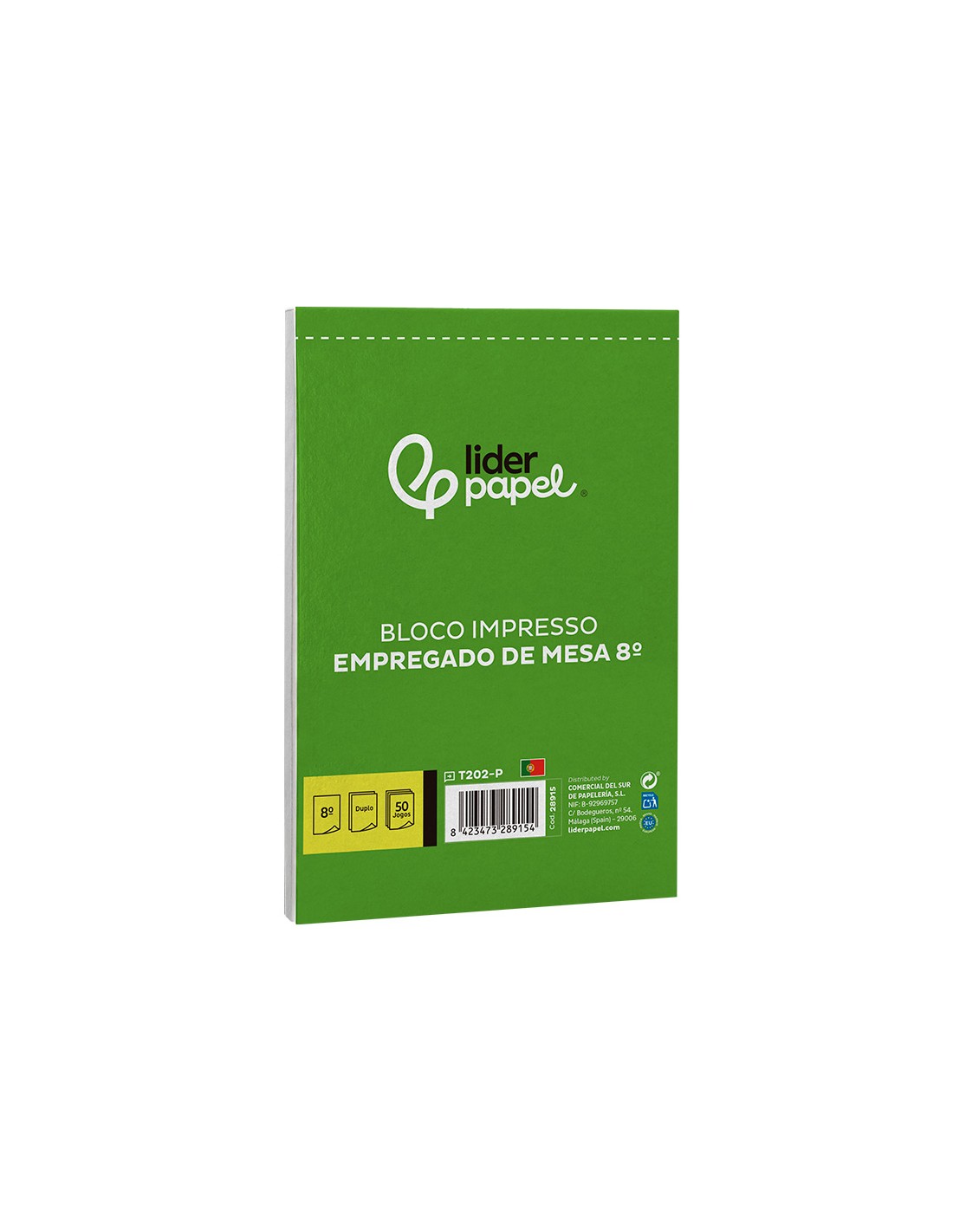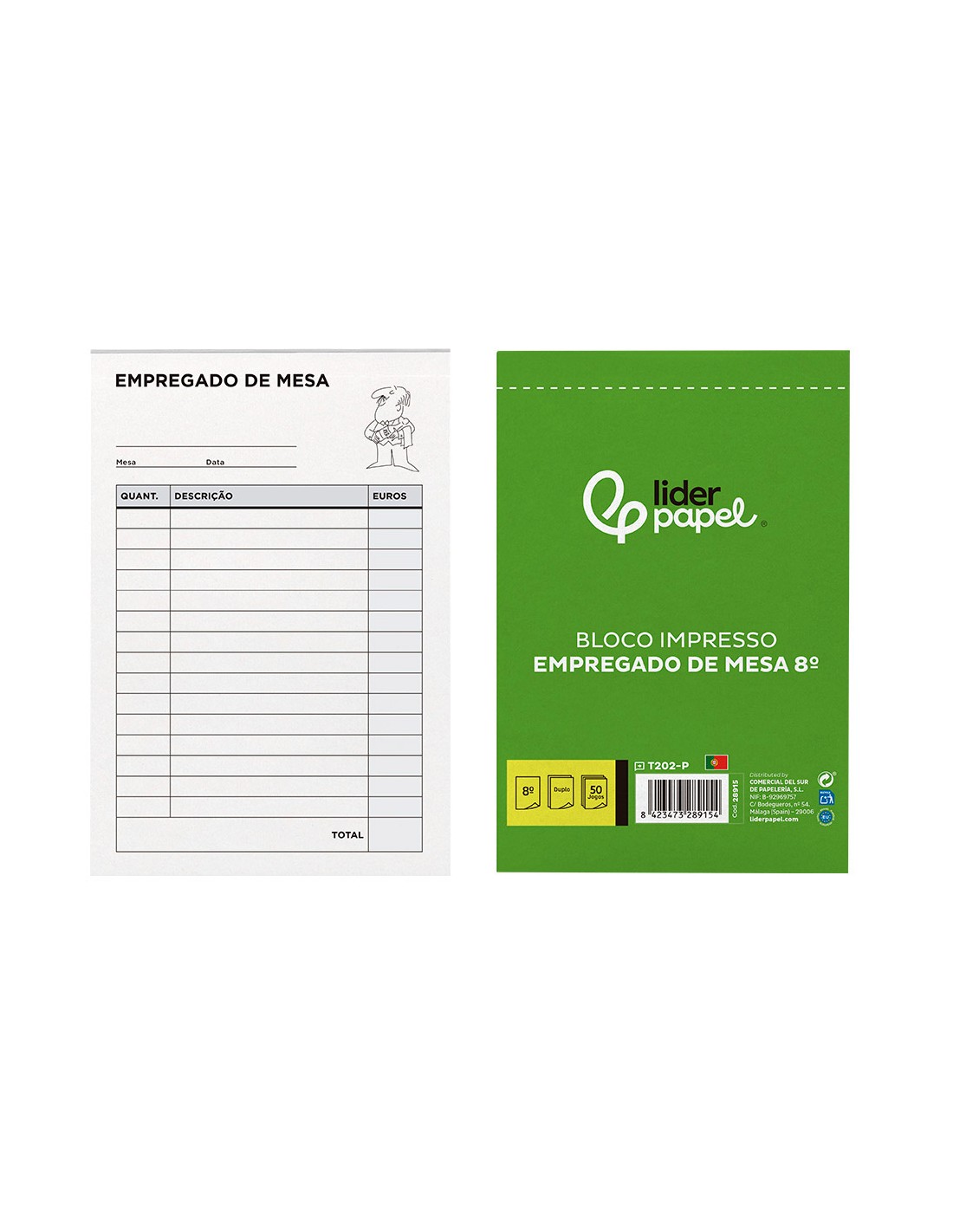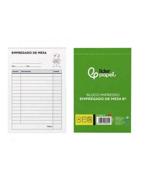 Talonario liderpapel camarero octavo sin iva 202 duplicado texto en portugues