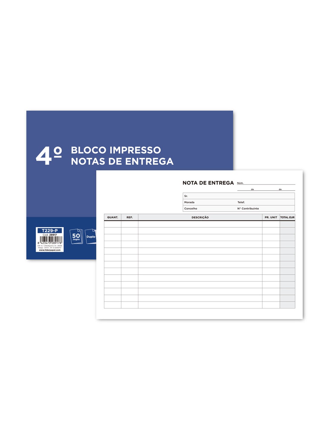 Talonario liderpapel entregas cuarto apaisado 229 duplicado -texto en portugues