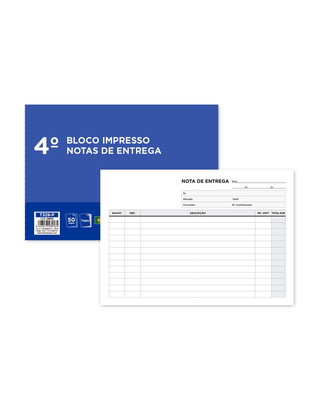 Talonario liderpapel entregas cuarto apaisado 329 triplicado-texto en portugues