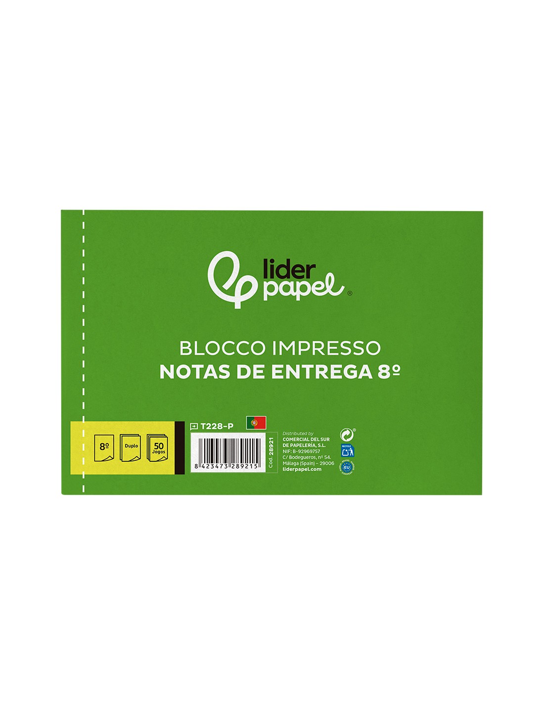 Talonario liderpapel entregas octavo apaisado 228 duplicado -texto en portugues