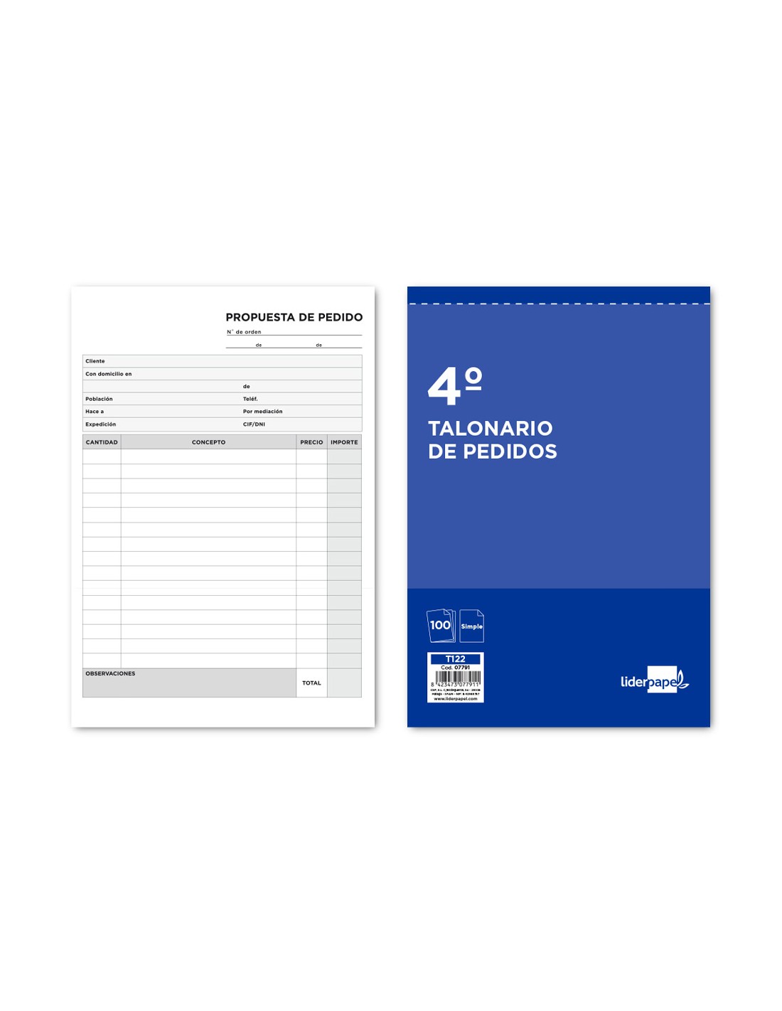 Talonario liderpapel pedidos cuarto original 122