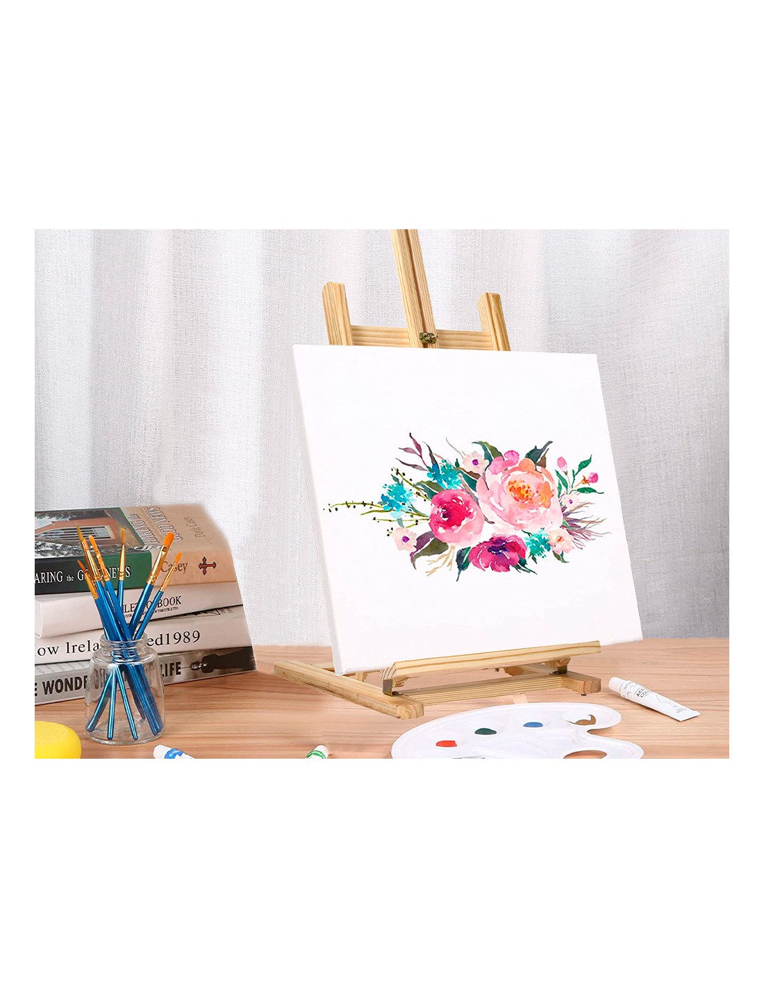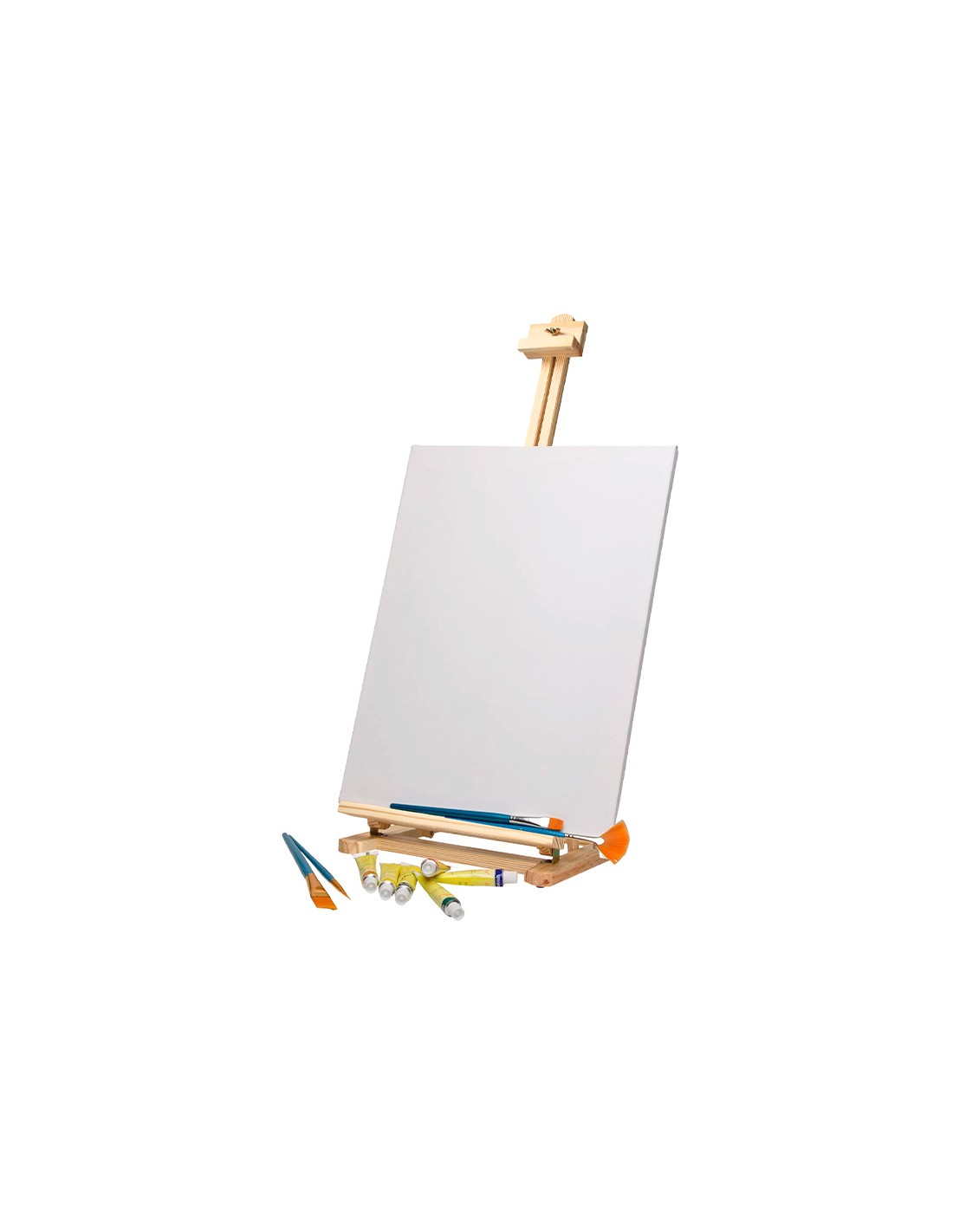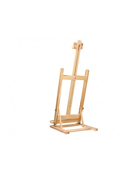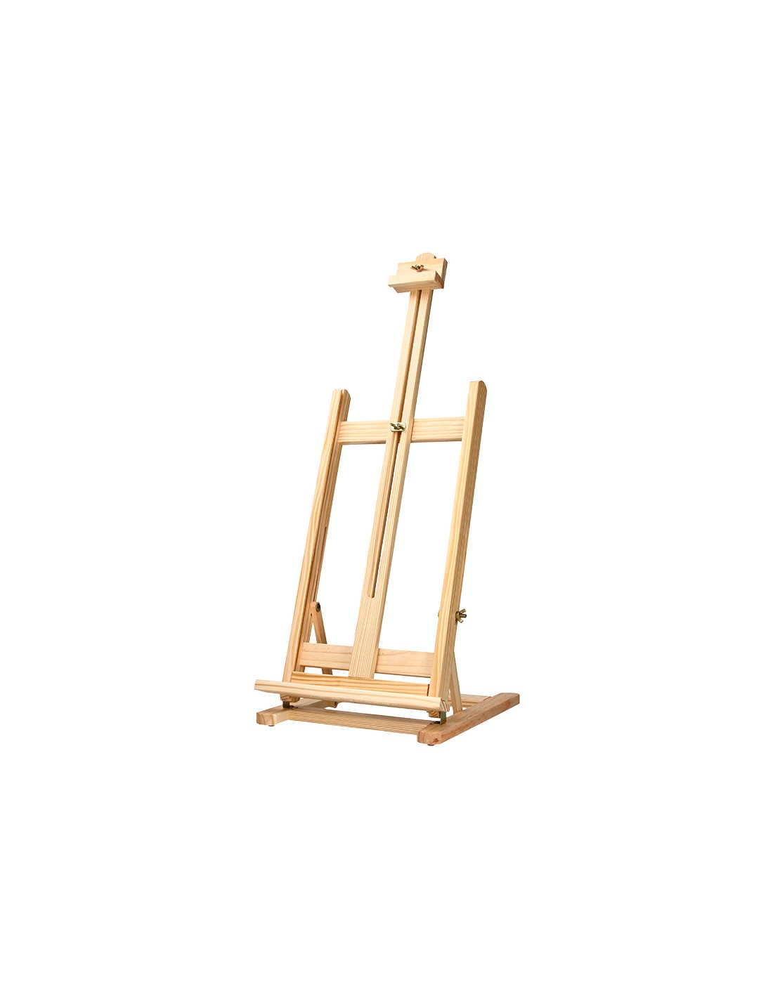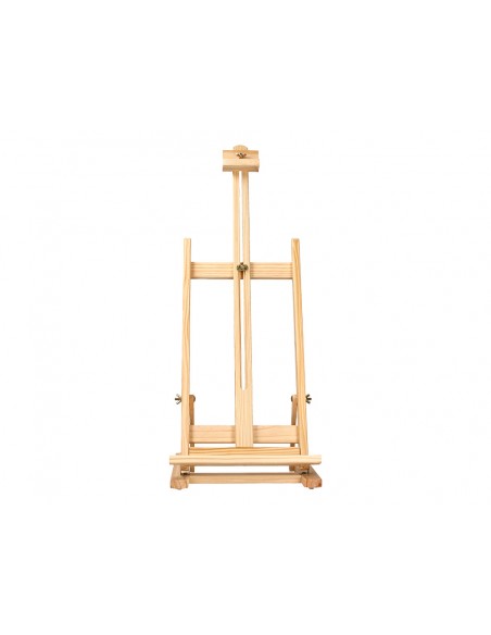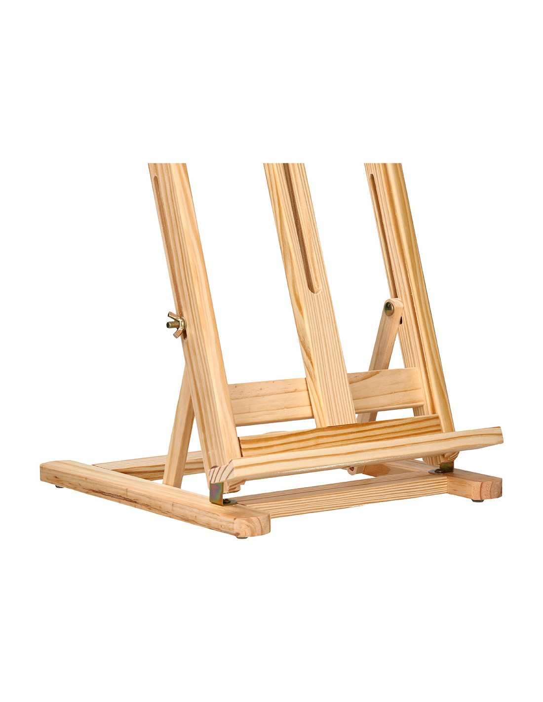 Pequeño caballete de escritorio que ocupa poco espacio y es perfecto para tener sobre la mesa o llevar y traer de tus clases de pintura. Fabricado en madera procedente de bosques sostenibles. Dispone de bandeja portaobjetos, es abatible y regulable en altura. Medidas 27,5 x 30 x 80 cm.