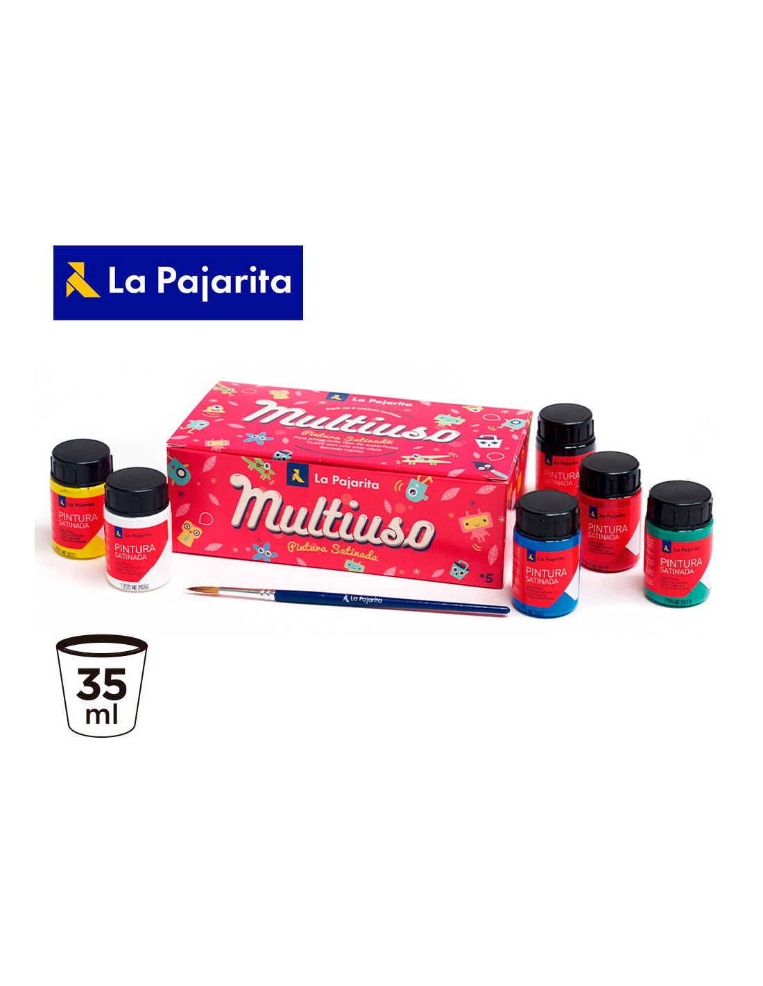 Pintura latex la pajarita satinada 35 ml caja de 6 unidades colores surtidos