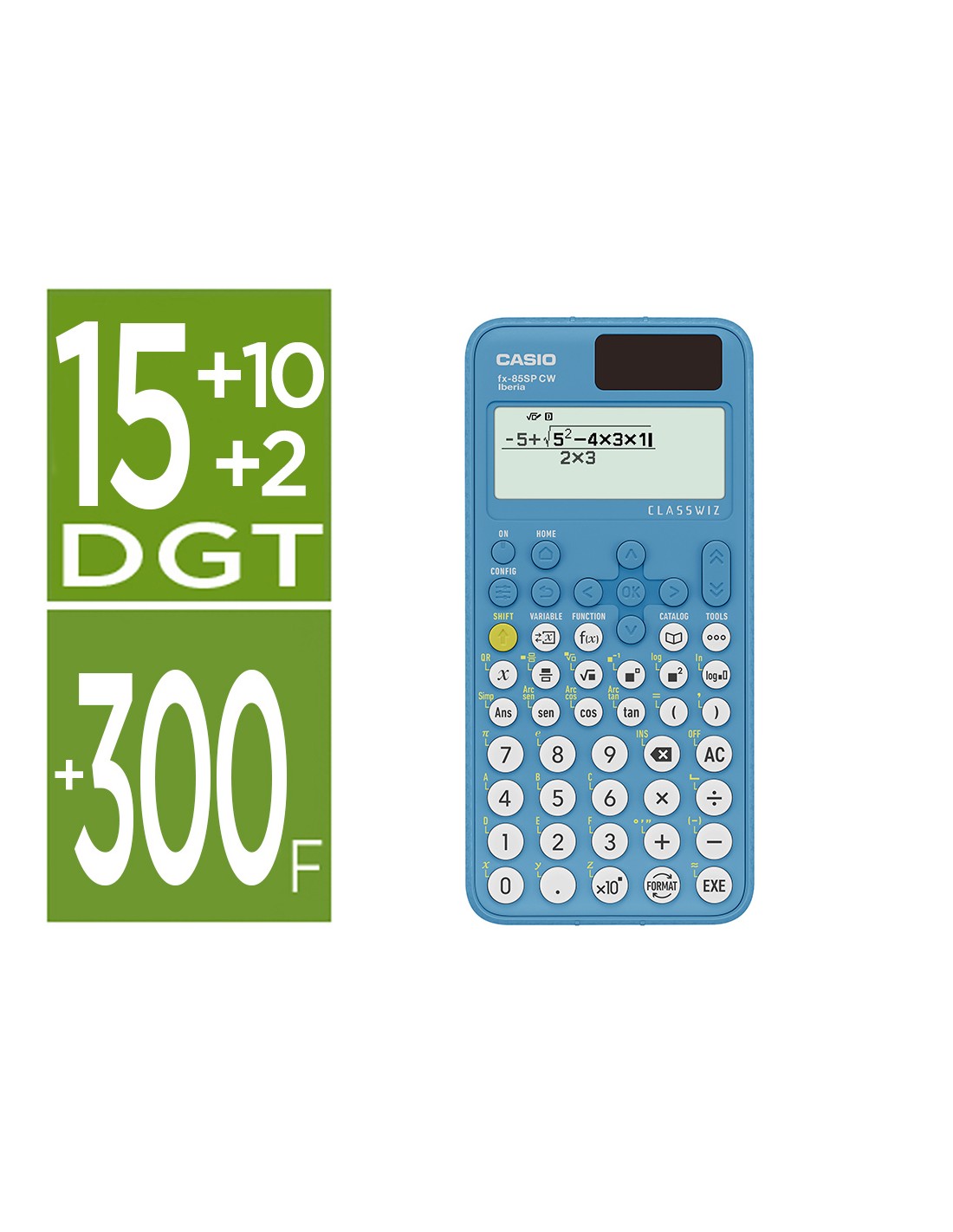 Calculadora casio fx-85sp cw iberia solar cientifica +300 funciones 9 memorias 15+10+2 digitos 16 mb flash con tapa