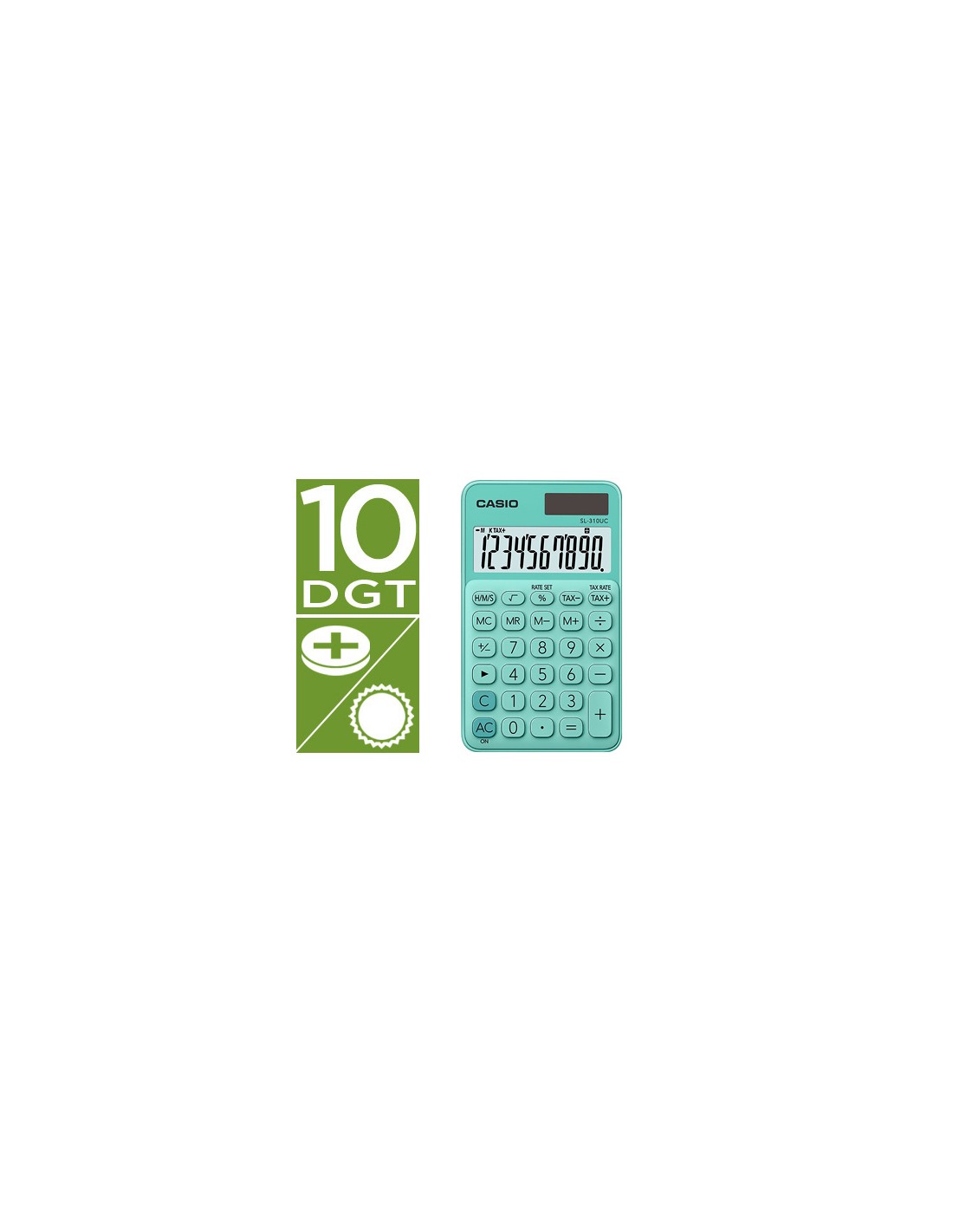 Calculadora casio sl-310uc-gn bolsillo 10 digitos tax +/- tecla color verde