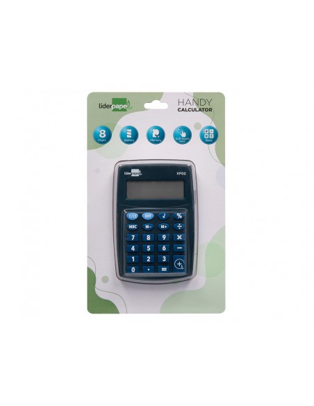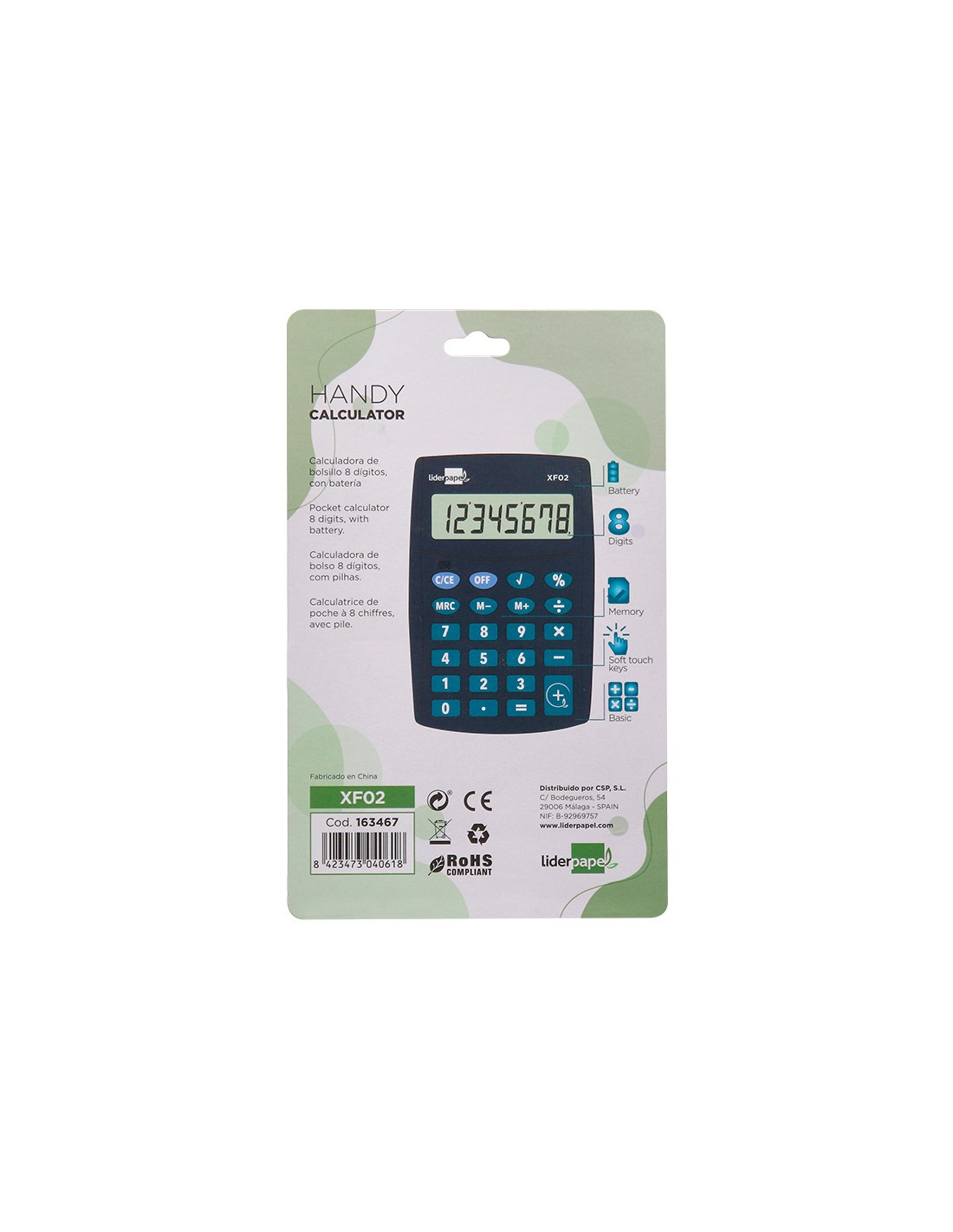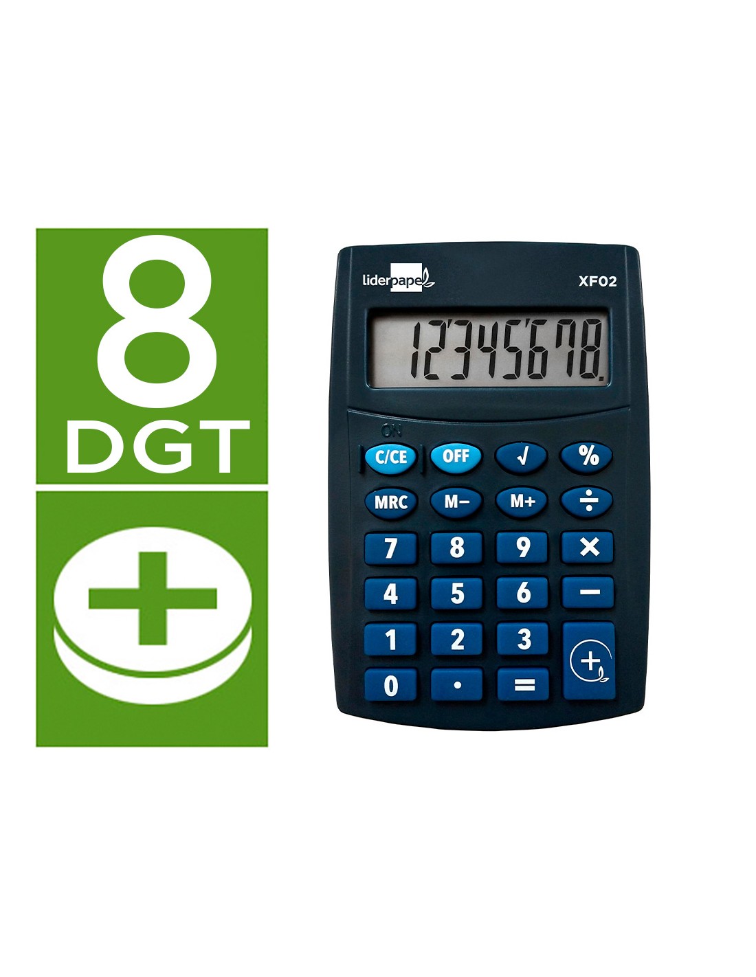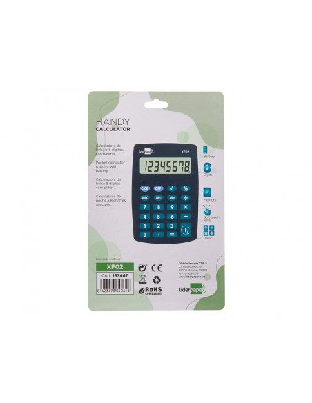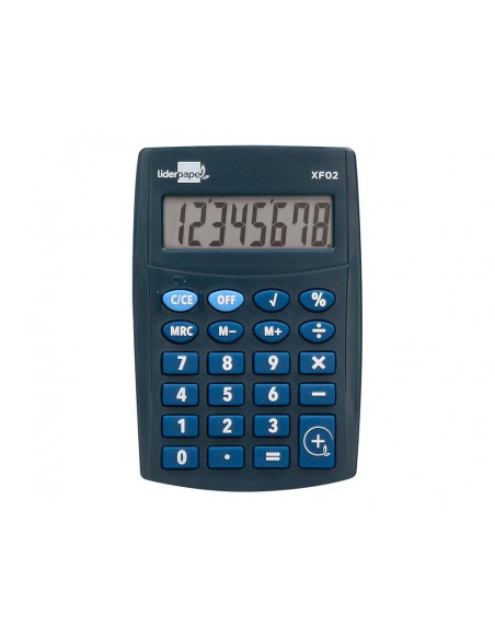 Calculadora liderpapel bolsillo xf02 8 digitos pilas color azul 99x64x9 mm