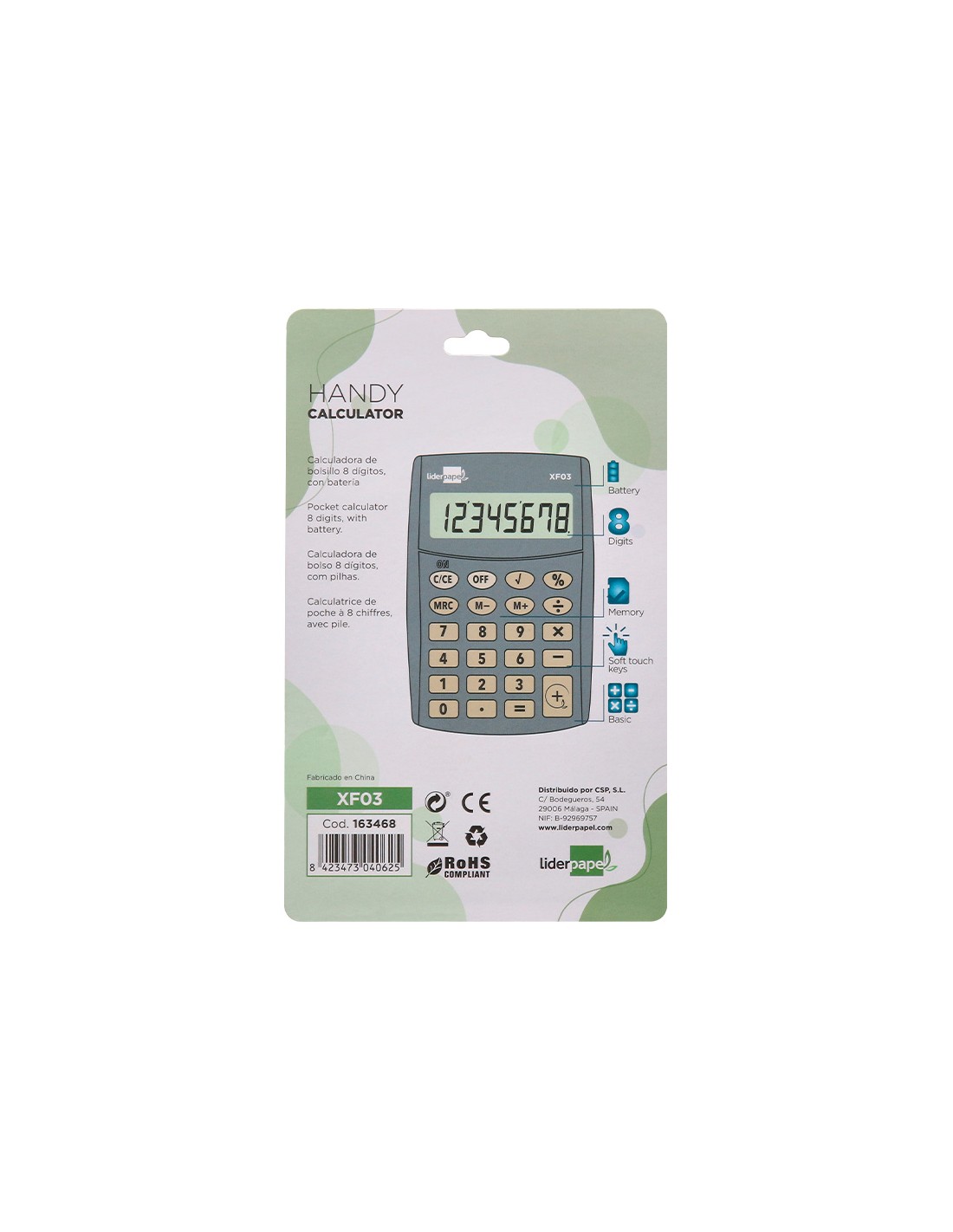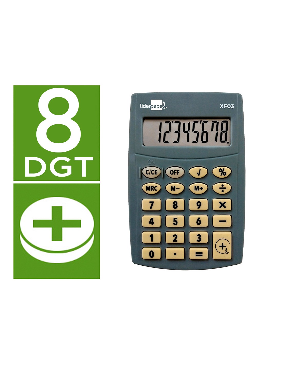LIDERPAPELCalculadora liderpapel bolsillo xf03 8 digitos pilas color gris 99x64x9 mm