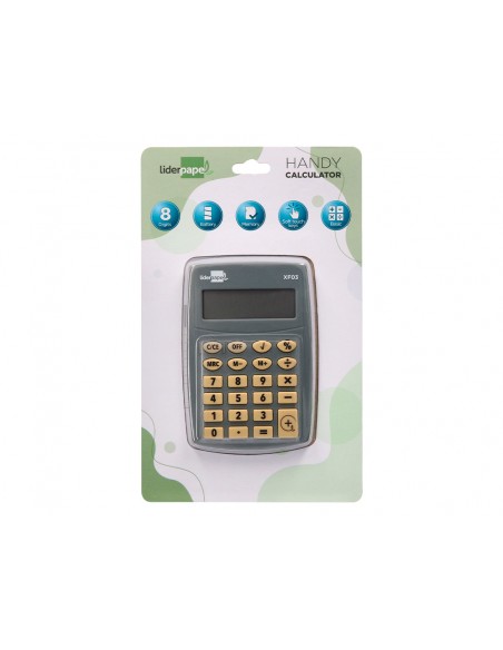 Calculadora liderpapel bolsillo xf03 8 digitos pilas color gris 99x64x9 mm