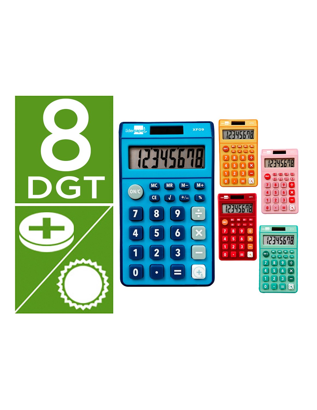 LIDERPAPELCalculadora liderpapel bolsillo xf14 8 digitos solar y pilas 115x65x8 mm expositor de 16 unidades colores