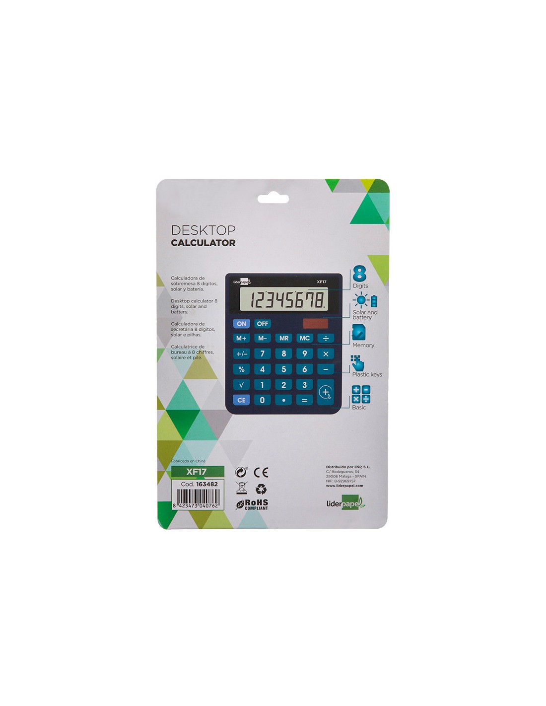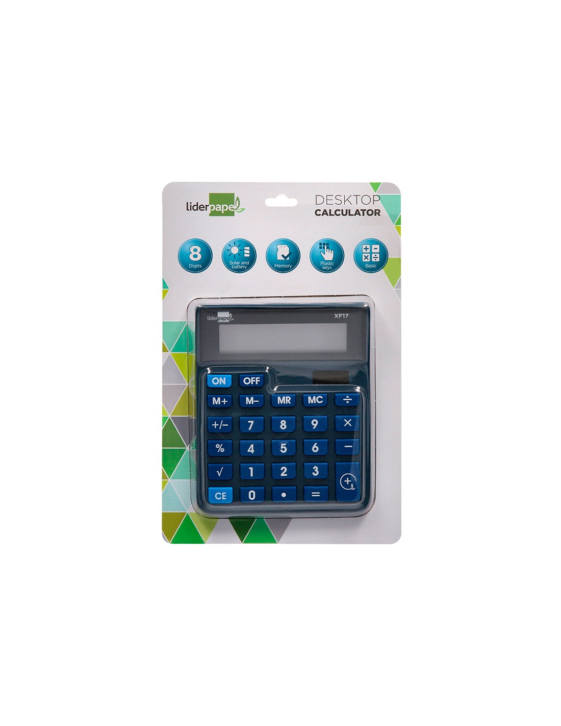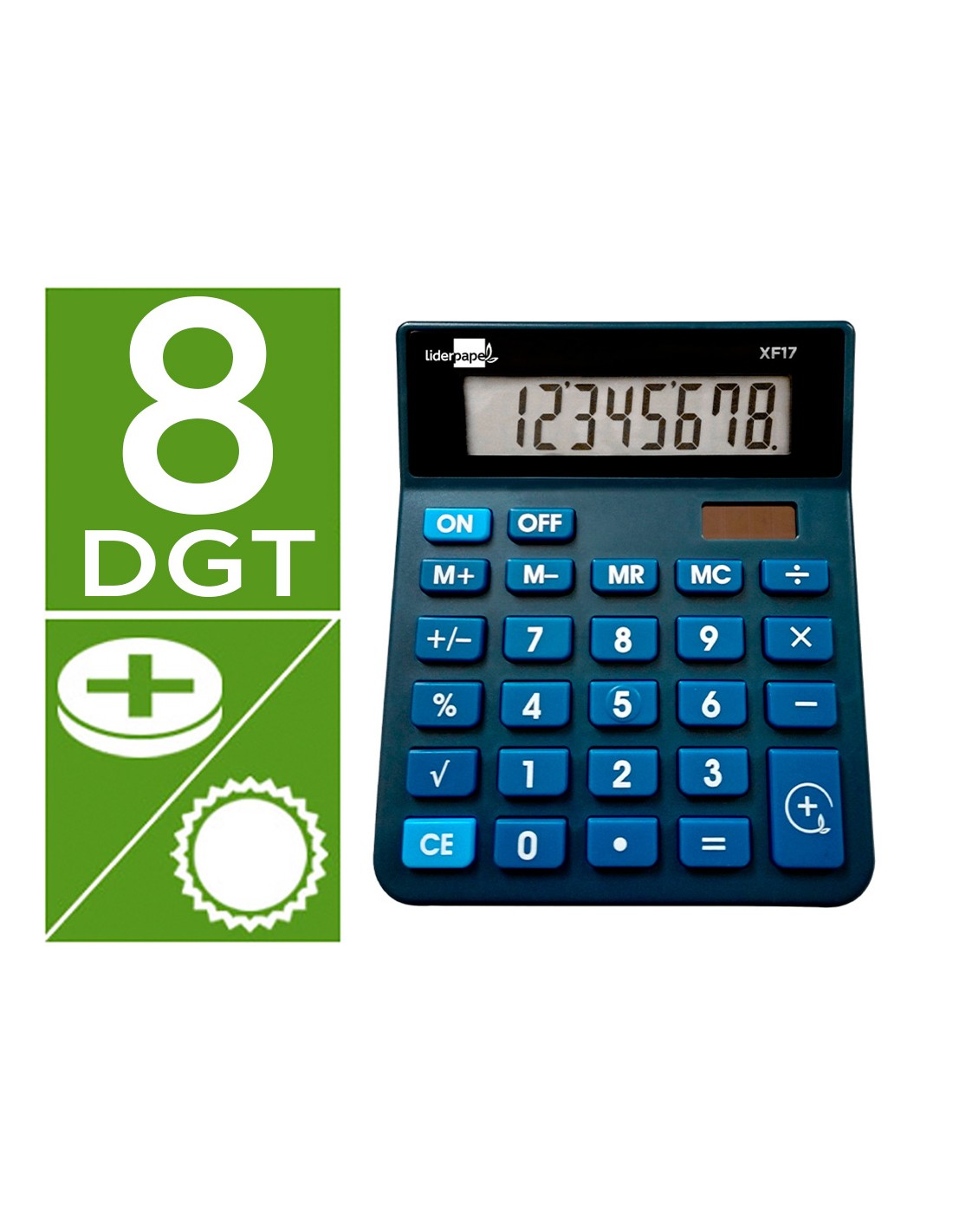 LIDERPAPELCalculadora liderpapel sobremesa xf17 8 digitos solar y pilas color azul 127x105x24 mm