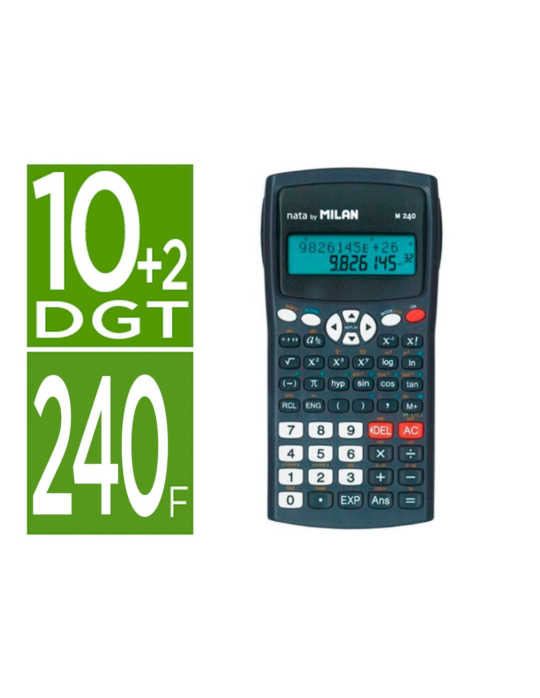 Calculadora milan cientifica m240 black 2 lineas 240 funciones 10+2 digitos color negra con tapa color gris