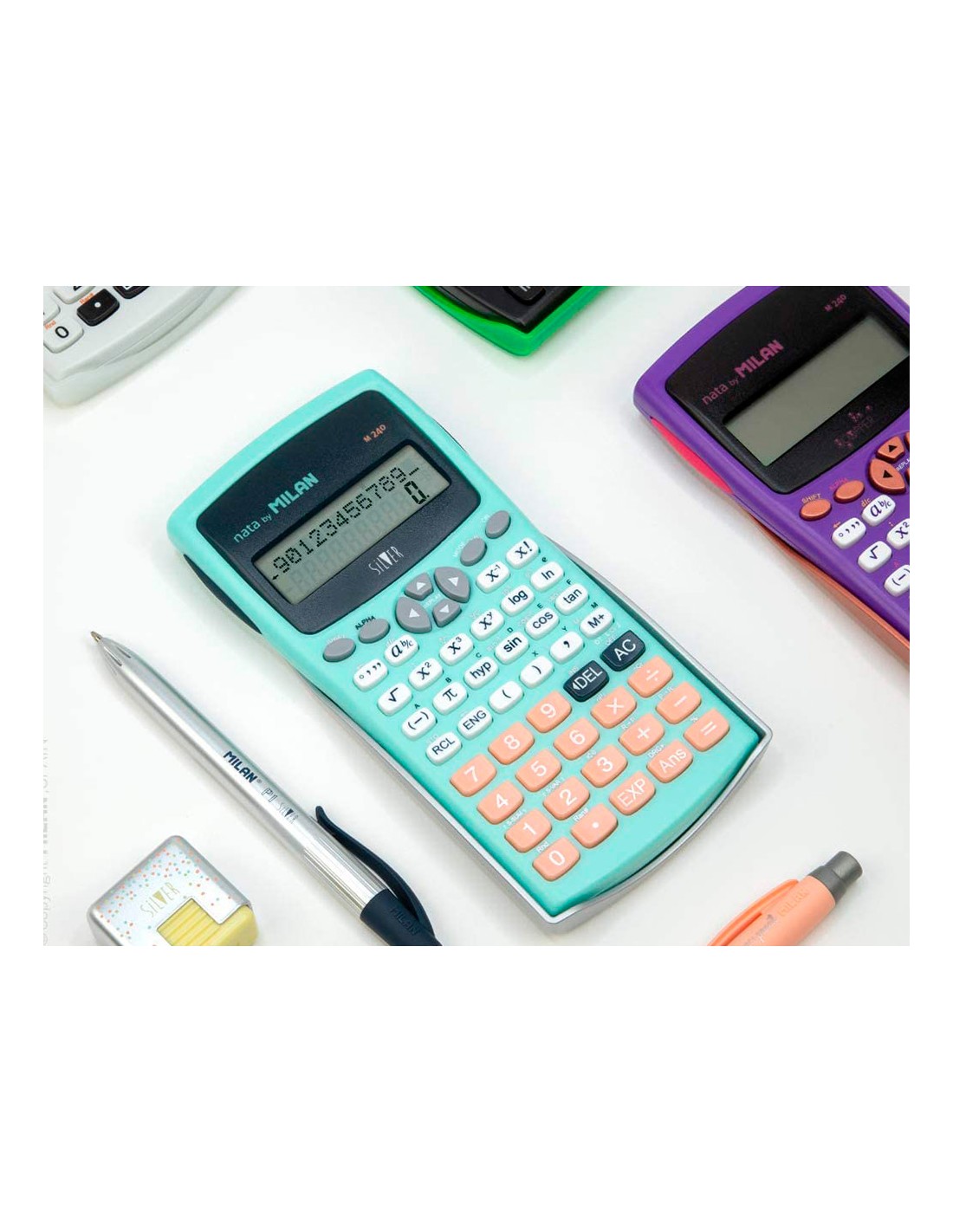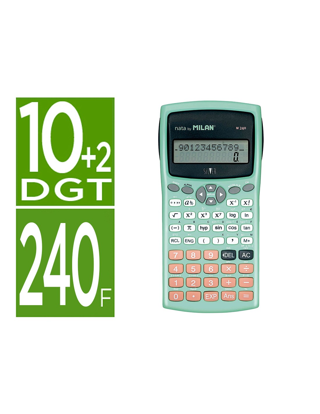 Calculadora milan cientifica m240 silver 2 lineas 240 funciones 10+2 digitos color verde turquesa con tapa color