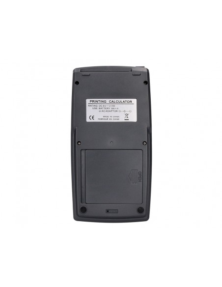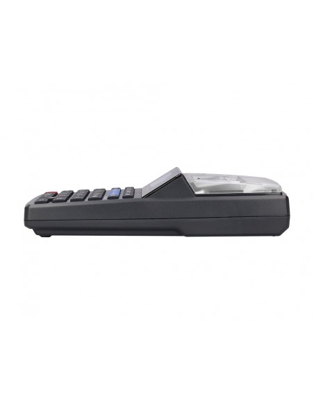 Calculadora impresora con pantalla de 12 dígitos. Utiliza rollo de papel de 57 mm de ancho por 25 mm de diámetro. Imprime a una tinta azul. Con tecla de memoria, redondeo, tecla doble cero, tecla programable de impuestos, margen de beneficio, precio de coste y precio de venta. Funciona con 4 pilas AA o con adaptador de 6V 0,5ª. Pilas incluidAs. Compatible CON RODILLO entintado código 44293. Medidas 98 x 192 x 44 mm. Peso 338 g.