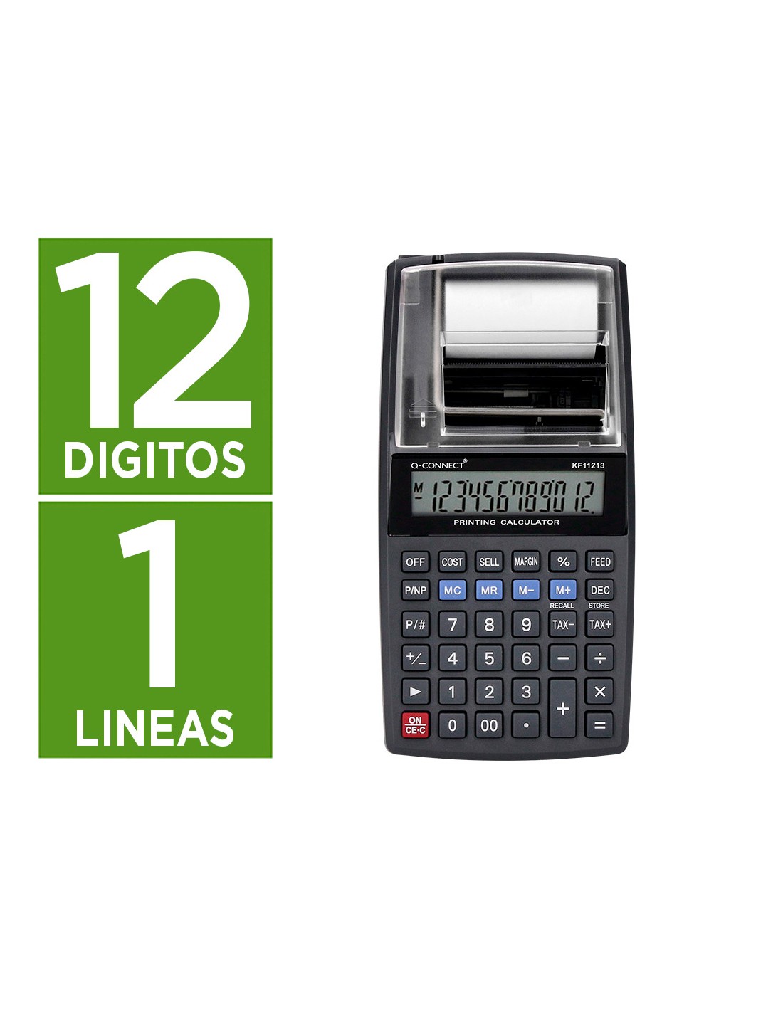Calculadora q-connect impresora pantalla papel kf11213 12 digitos tinta azul