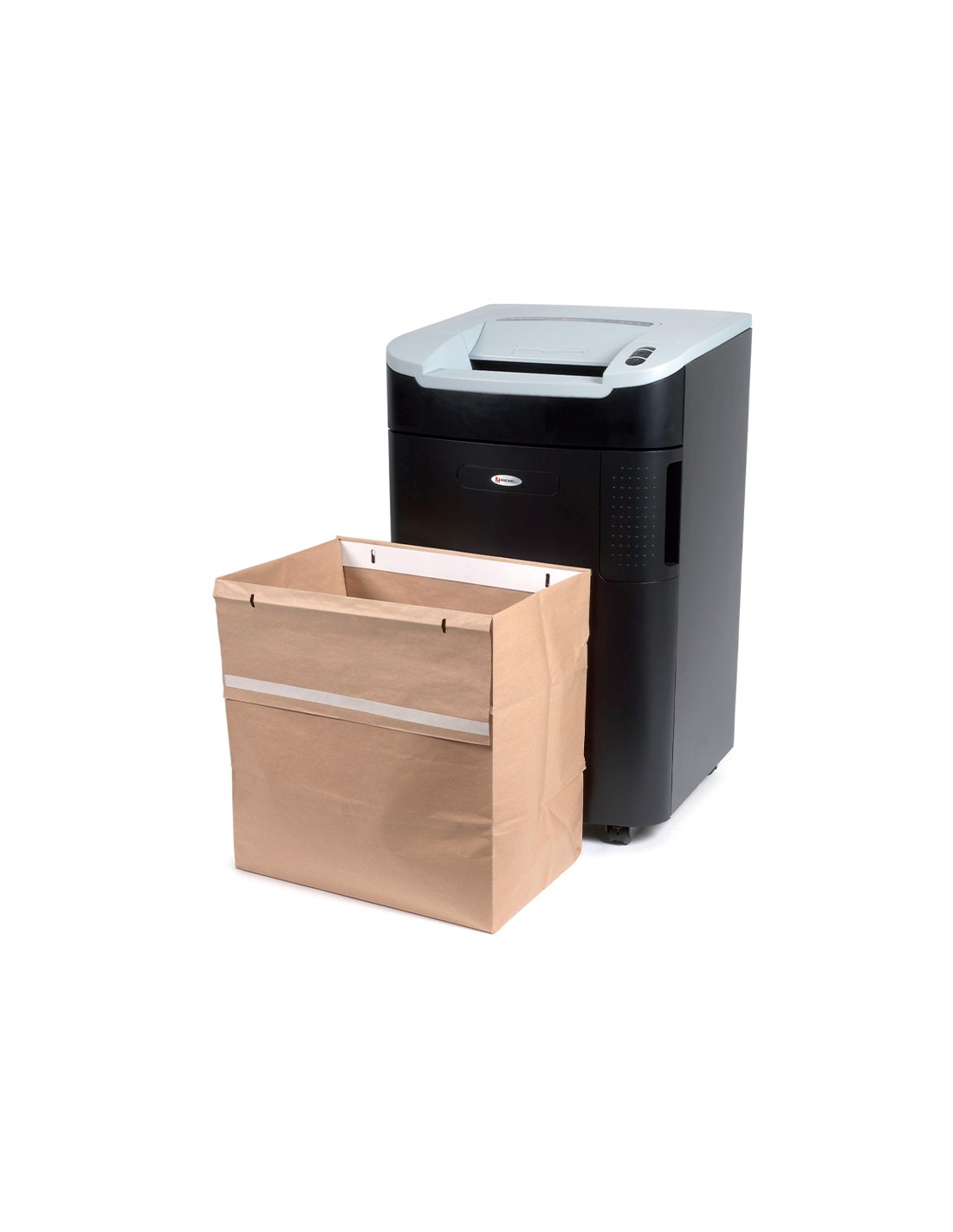 Bolsas para papel destruido reciclables con capacidad 115 litros. Autocierre diseñado para una eliminación limpia y eficiente de los residuos de la destructora. Basta con colocar la bolsa en el cubo de la destructora. Cierre mediante sus tiras autoadhesivas que permite reciclar la bolsa al mismo tiempo. Compatible con los modelos de destructoras Rexel Mercury. Medidas 330 x 510 x 490 mm.