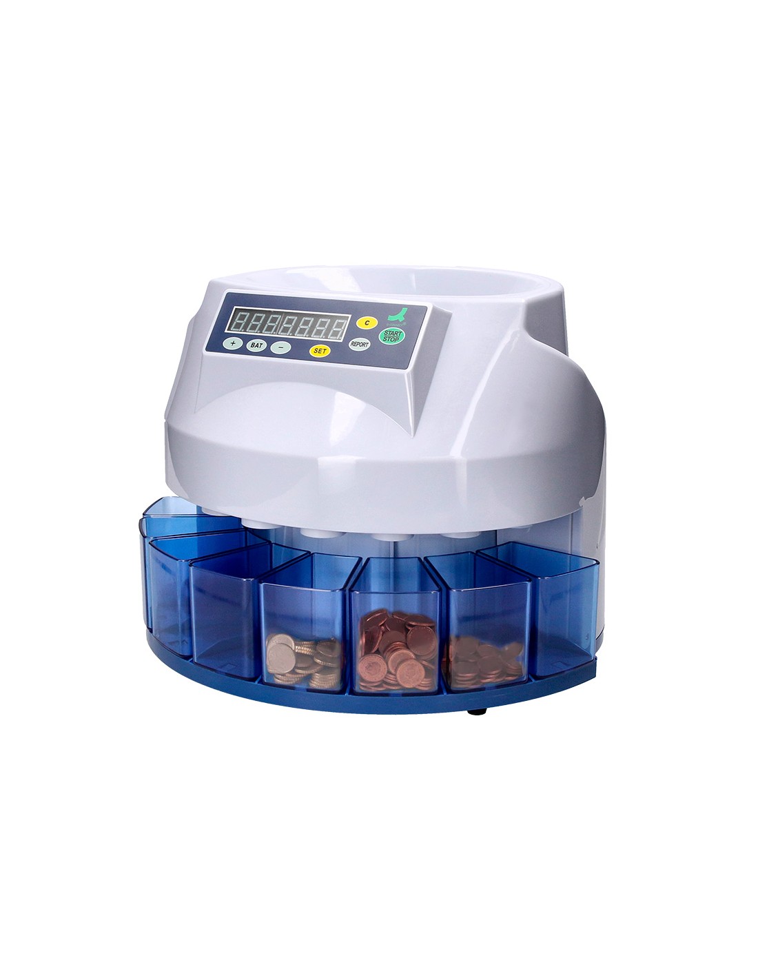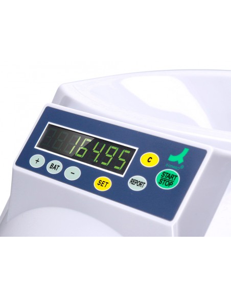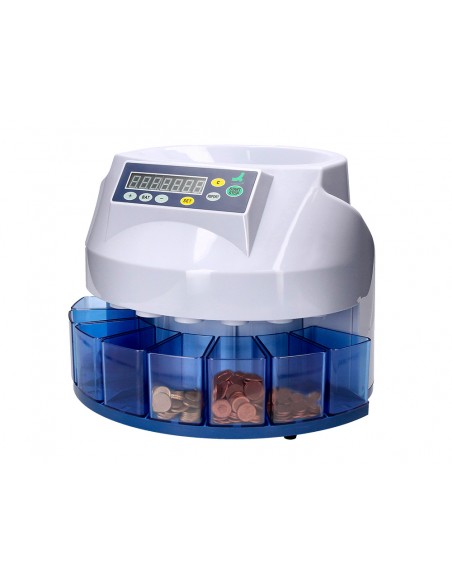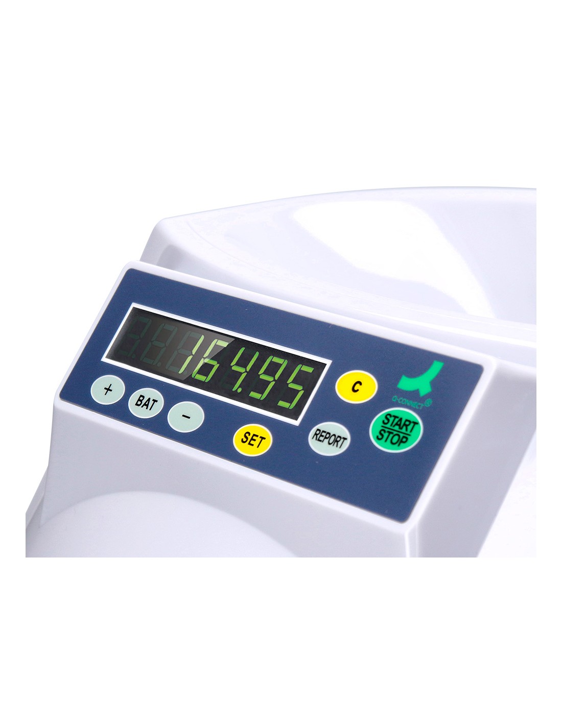 Contador y clasificador de mon edas q-connect suma resta y totaliza 216 monedas/minuto