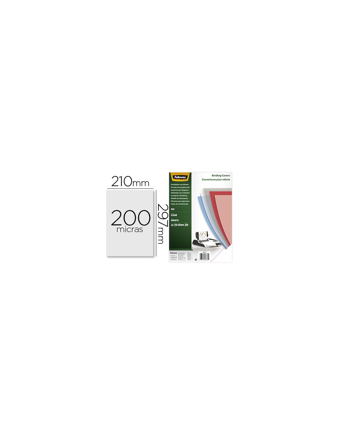 Tapa de encuadernacion fellowes din a4 pvc transparente cristal 200 micras pack de 100 unidades