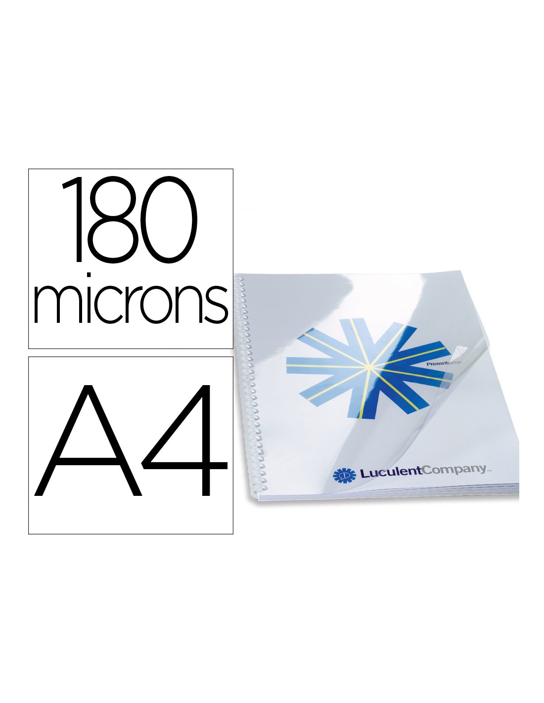 La encuadernación no puede ser más sencilla. Fabricadas con PVC duradero ymuy transparente, las portadas para encuadernación HiClear aportan un que de calidad a cualquier documen. La presentación de la portada resulta así impactante y llamativa y el contenido dispone de la mejor protección. 180 micras, acabado transparente. Formato A4.