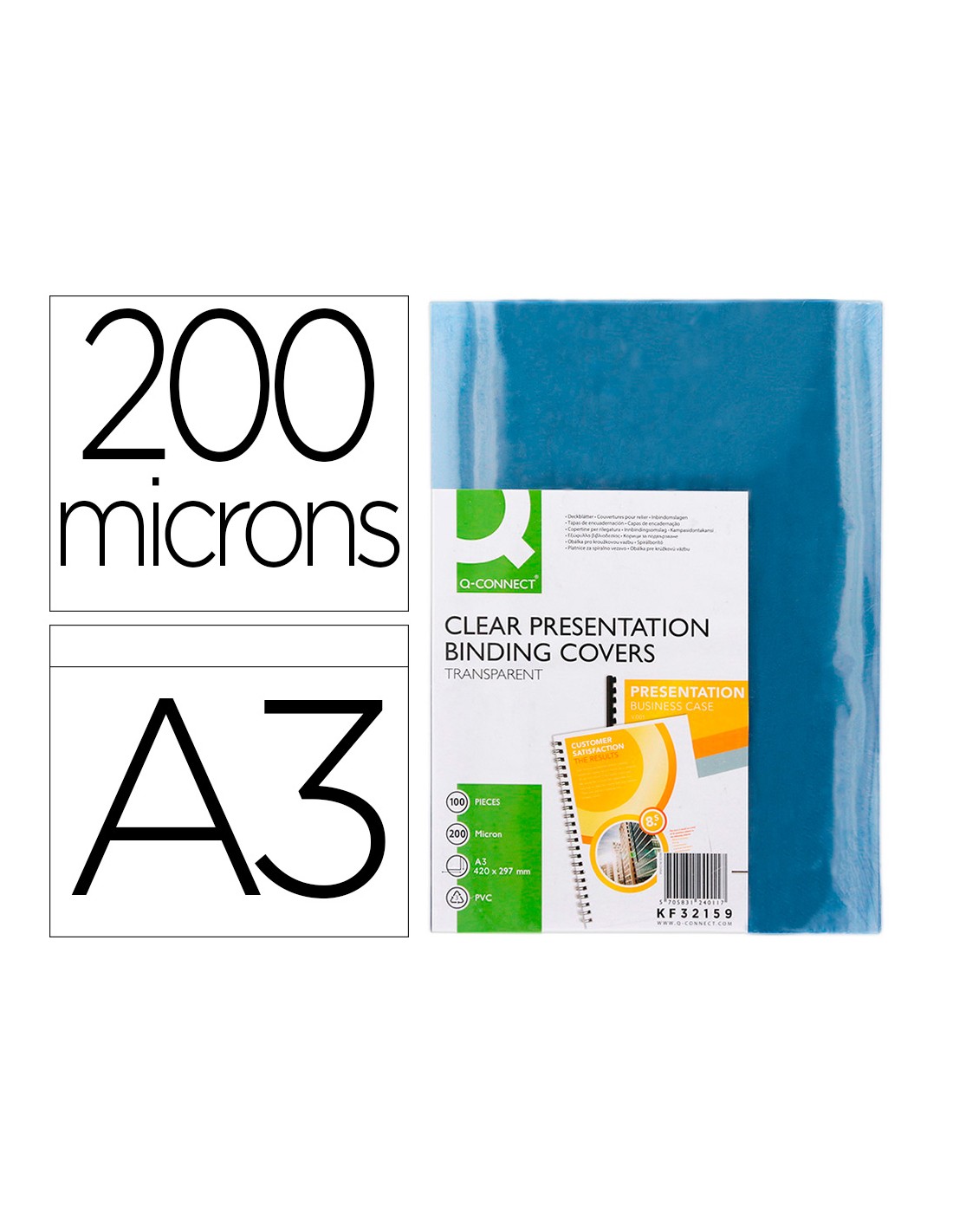 Tapa de encuadernacion q-connect pvc din a3 incolora 200 mc caja de 100 unidades