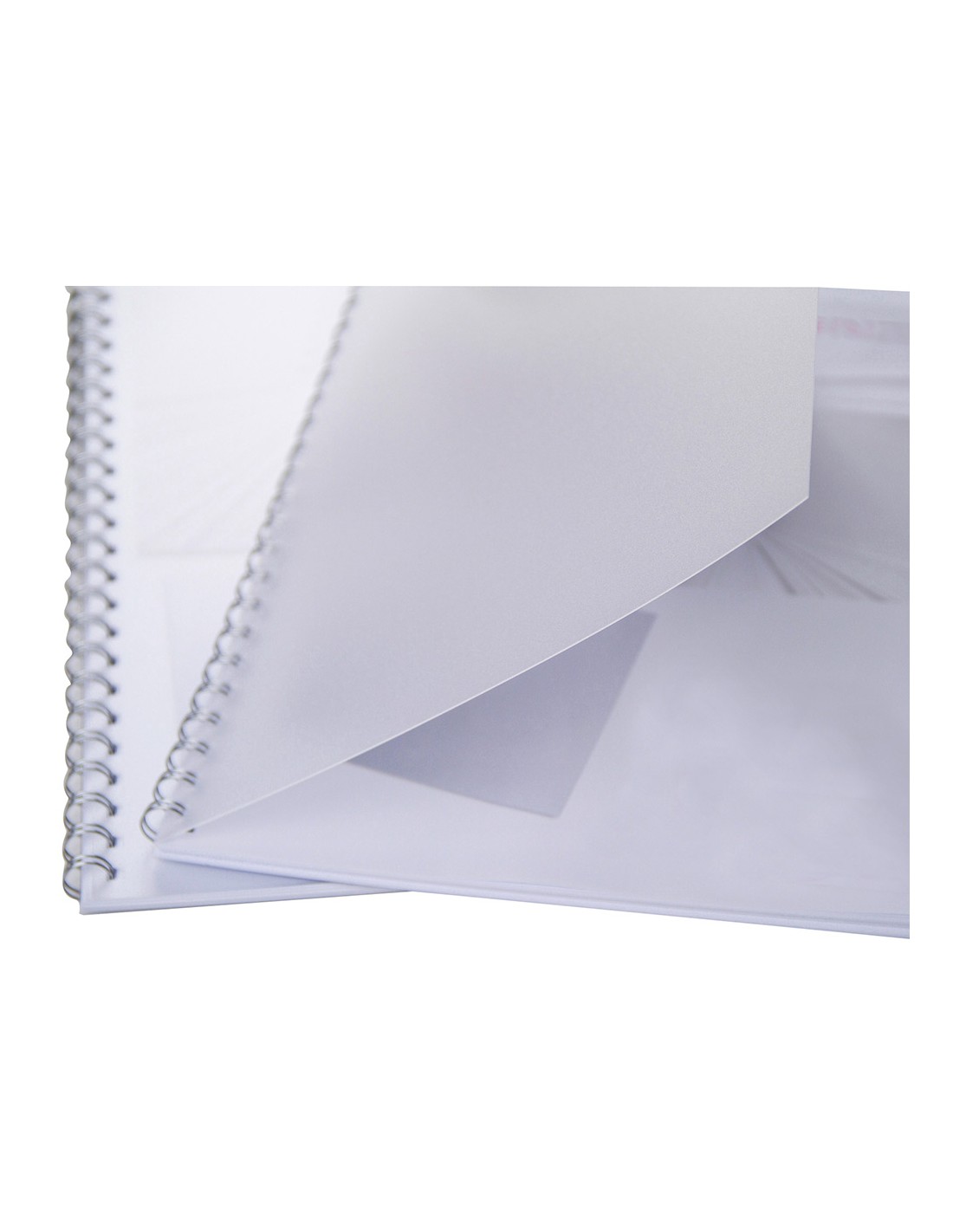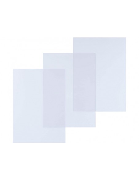Láminas en PVC de diferentes grosores y formatos para encuadernación en espiral, canutillo, anillas y otros. El pack de 100 unidades.
