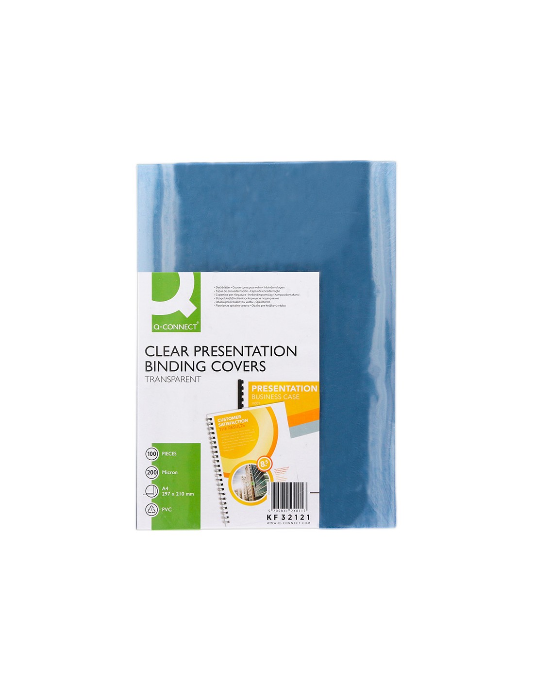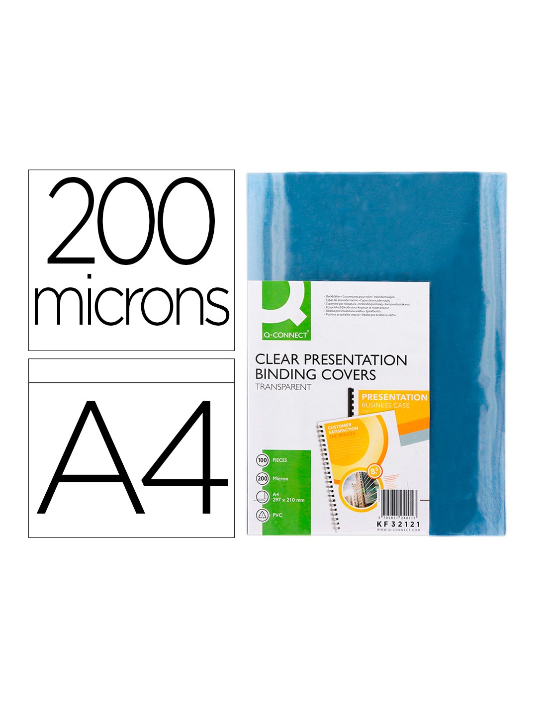 Tapa de encuadernacion q-connect pvc din a4 incolora 200 mc paquete de 100 unidades