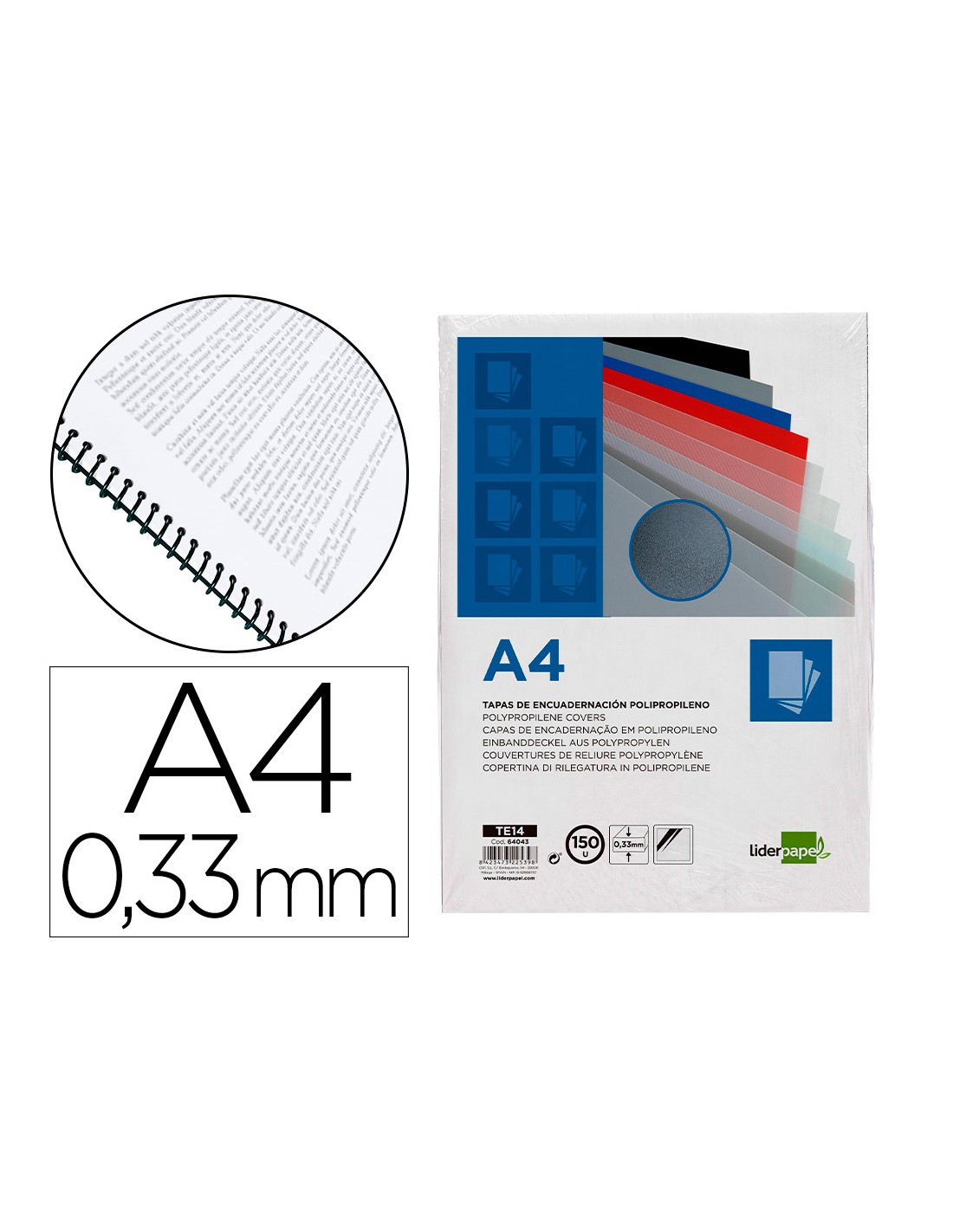 Tapa encuadernacion liderpapel polipropileno a4 0.33mm translucida paquete de 150 unidades