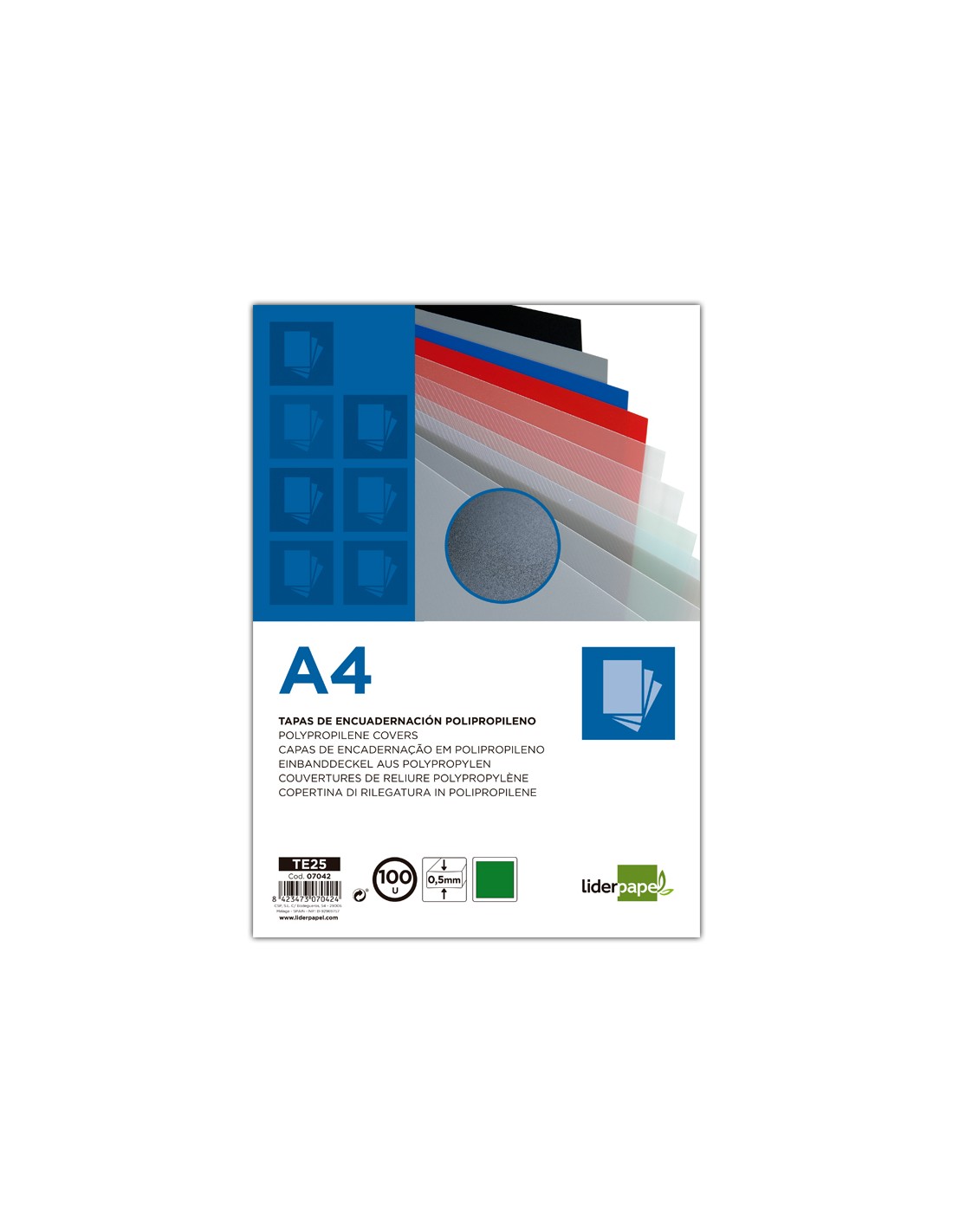 Tapa encuadernacion liderpapel polipropileno a4 0.5mm verde opaco paquete de 100 unidades