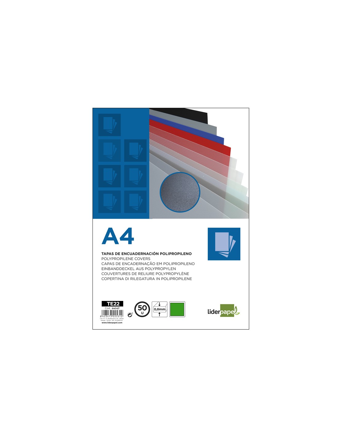 LIDERPAPELTapa encuadernacion liderpapel polipropileno a4 0.8mm verde opaco paquete de 50 unidades