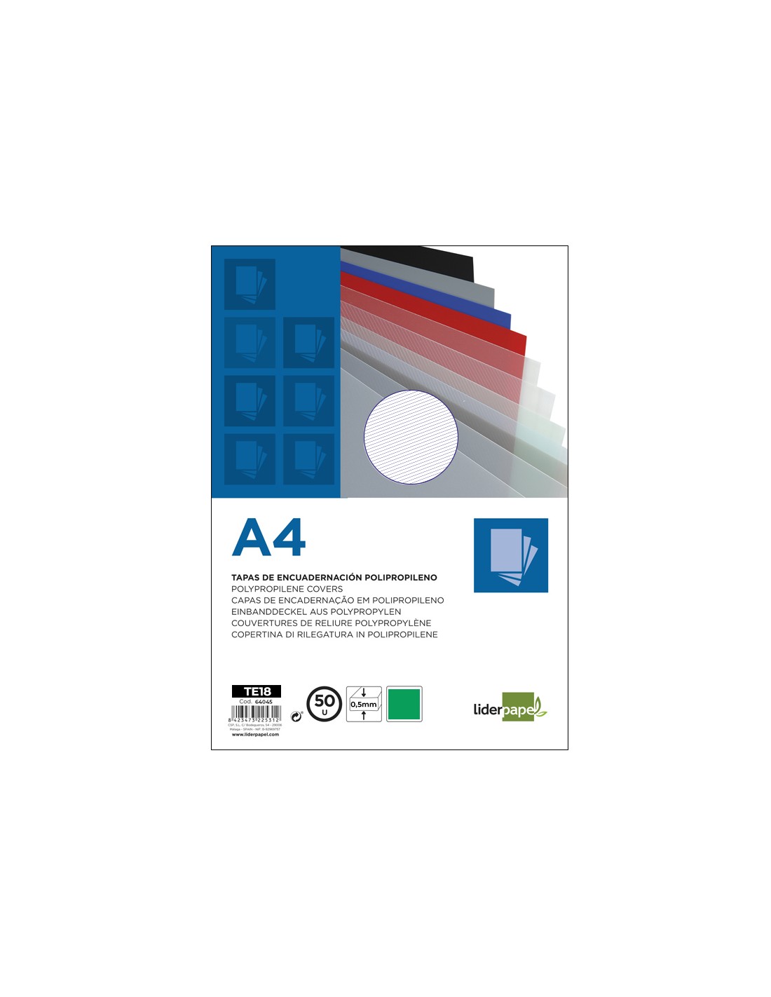 Tapa encuadernacion liderpapel polipropileno rayado a4 0.5mm verde paquete de 100 unidades