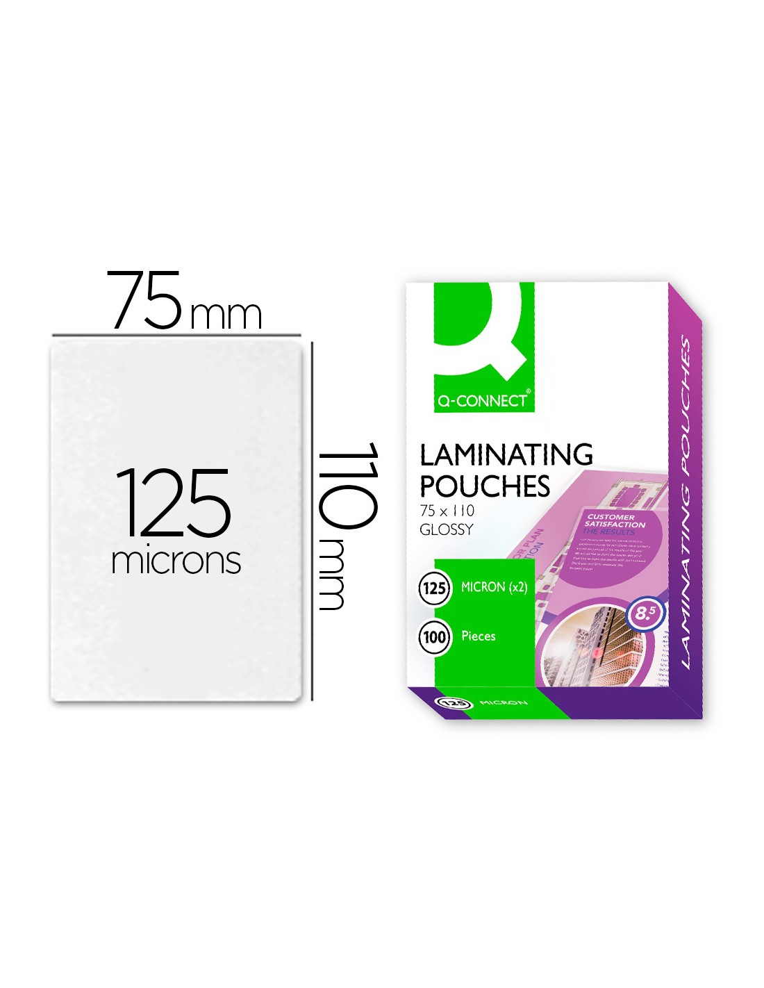 Bolsa de plastificar q-connect 110 x 75 mm 125 mc carnet de identidad caja de 100 unidades
