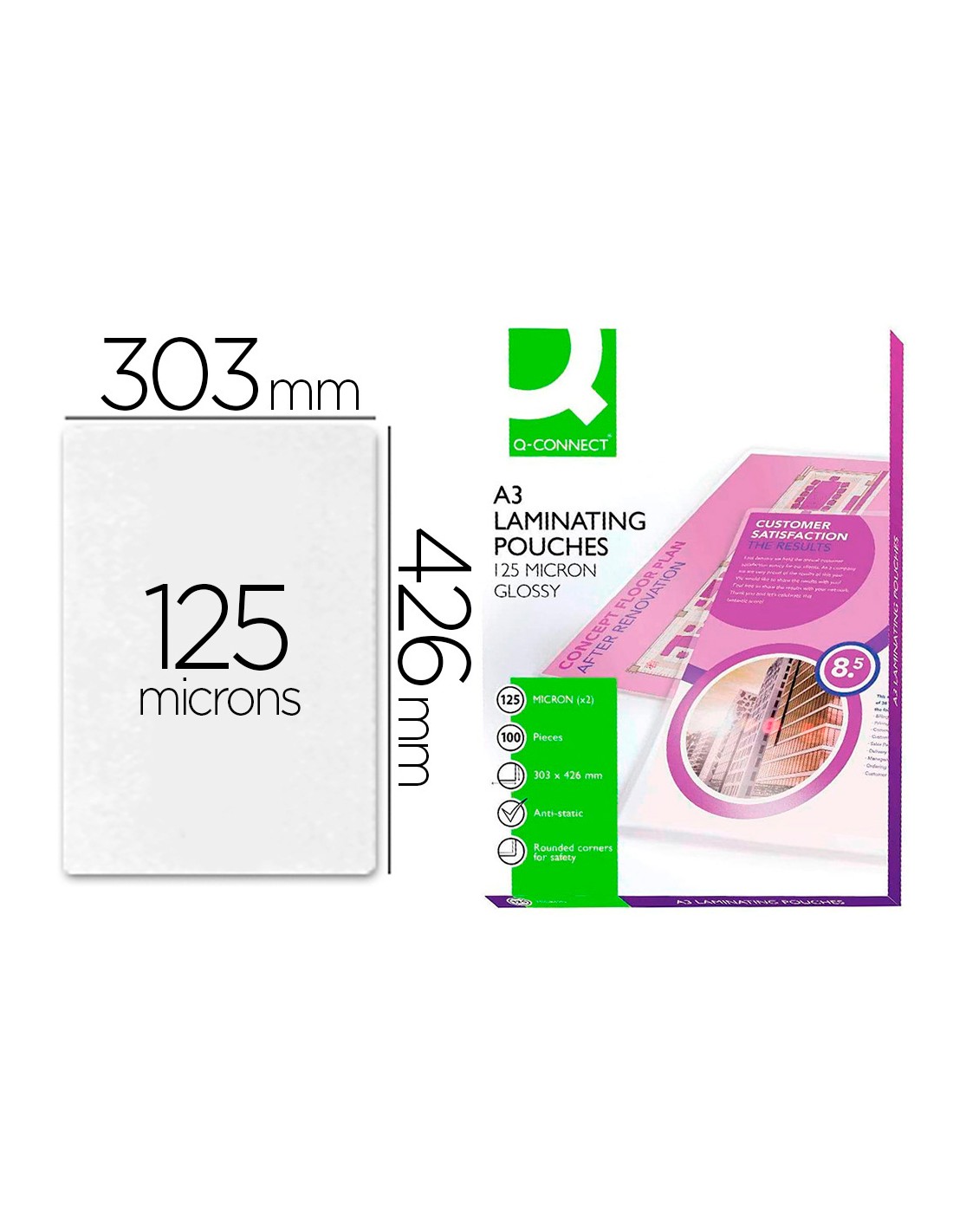 Bolsa de plastificar q-connect 303 x 426 mm 125 mc din a3 caja de 100 unidades