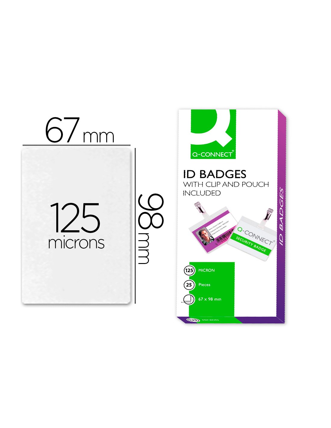 Bolsa de plastificar q-connect 67x98 mm 125 mc con clip para tarjetas de visita caja de 25 unidades