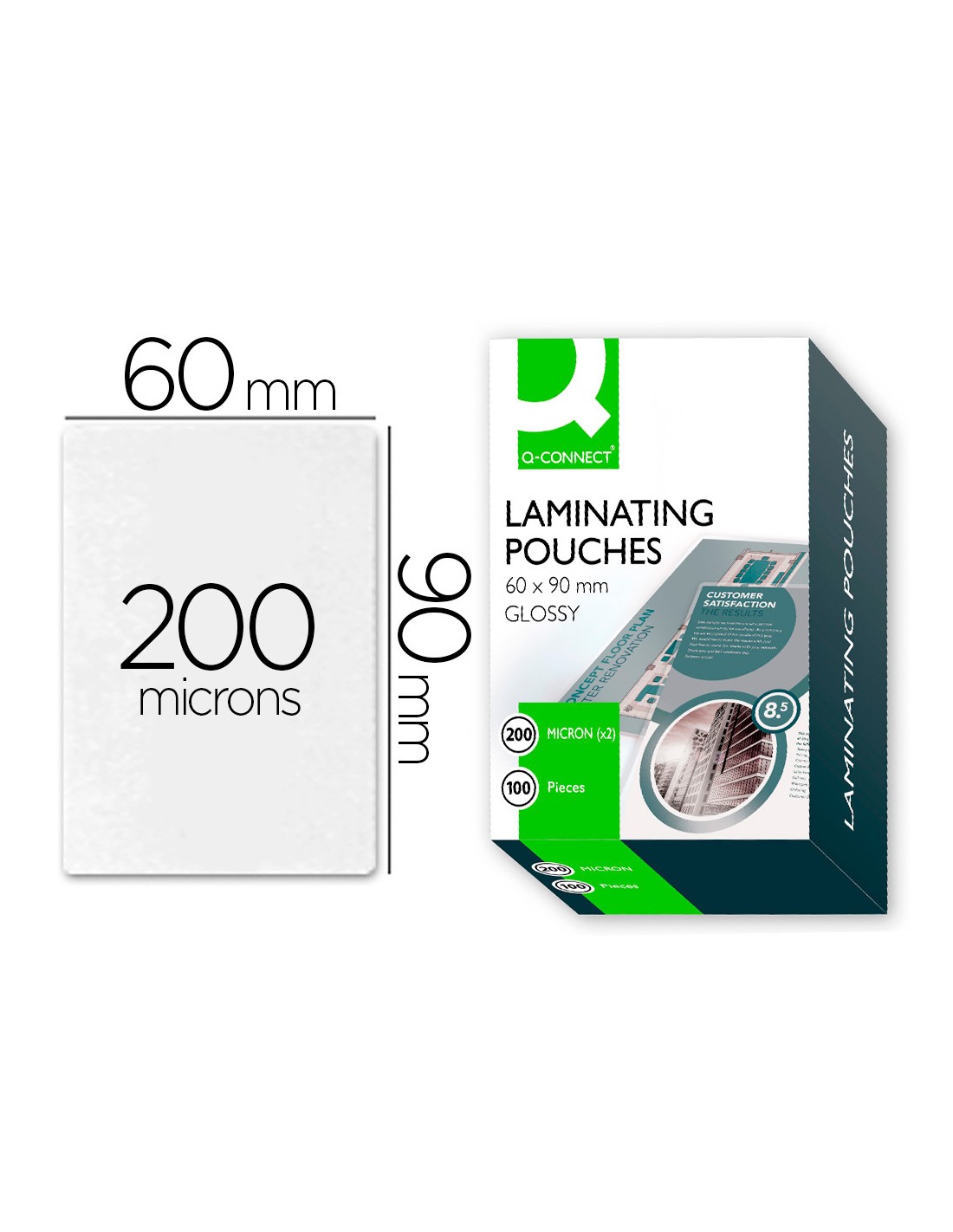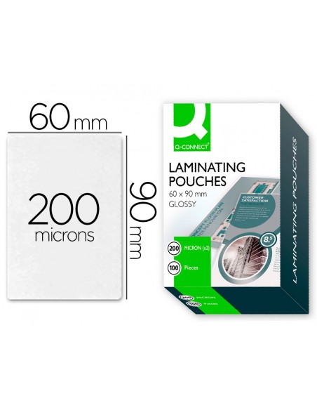 Bolsa de plastificar q-connect 90 x 60 mm 200 mc carnet de nif caja de 100 unidades