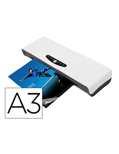 Plastificadora de uso profesional. Plastifica en frío y en caliente. Según el grosor de la lámina, acepta desde 75 a 250 micras. Papel de hasta 200 g/m². 1 minuto de calentamiento. Velocidad de plastificación 300 mm/min. 4 rodillos. Protección para el sobrecalentamiento. Medidas 490 x 154 x 65 mm. Peso 3,5 kg.