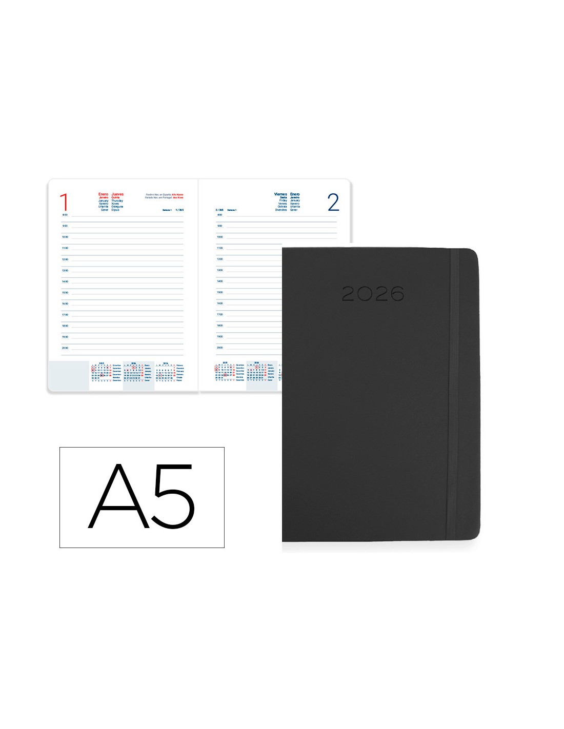 Agenda encuadernada liderpapel mykonos 150x210 mm 2026 dia pagina design 1 (gris) papel 70 gr