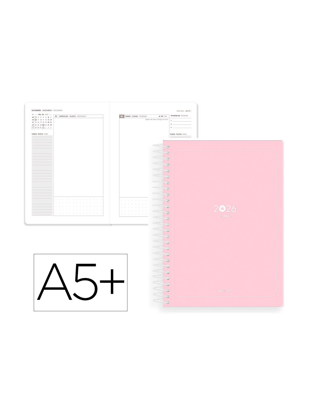 Agenda espiral antartik a5+ 2026 dia pagina basic papel 80 gr