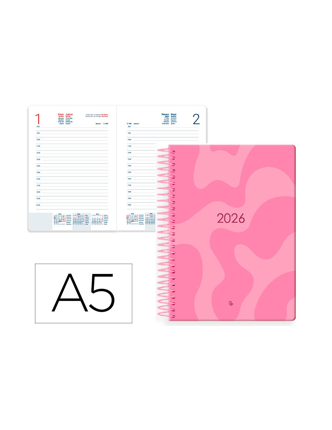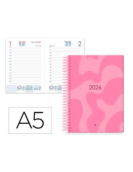Agenda espiral liderpapel syros 150x210 mm 2026 dia pagina design 4 papel 60 gr