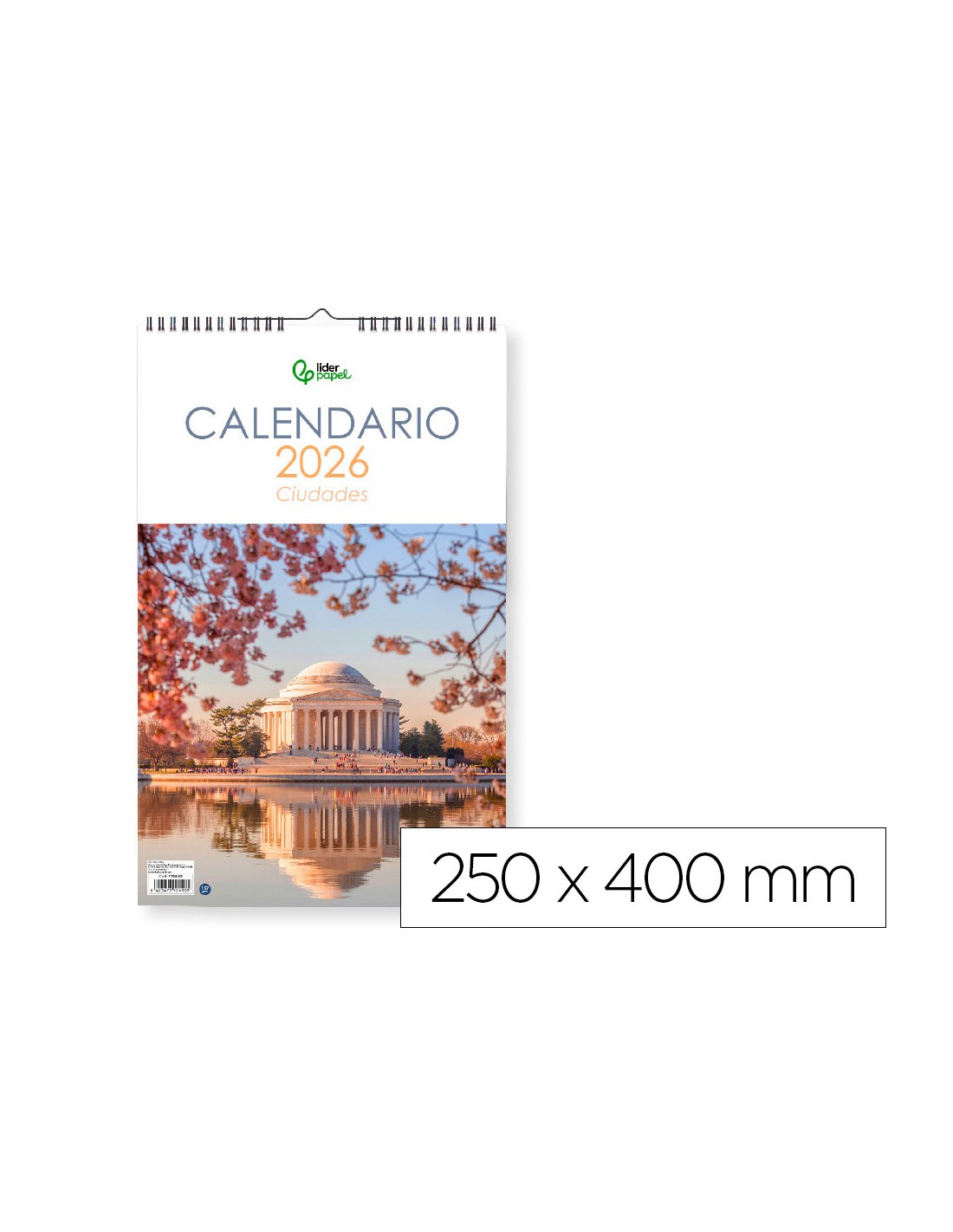 Calendario espiral pared liderpapel imagenes ciudades 2026 para escribir 25x40 cm papel 157 gr
