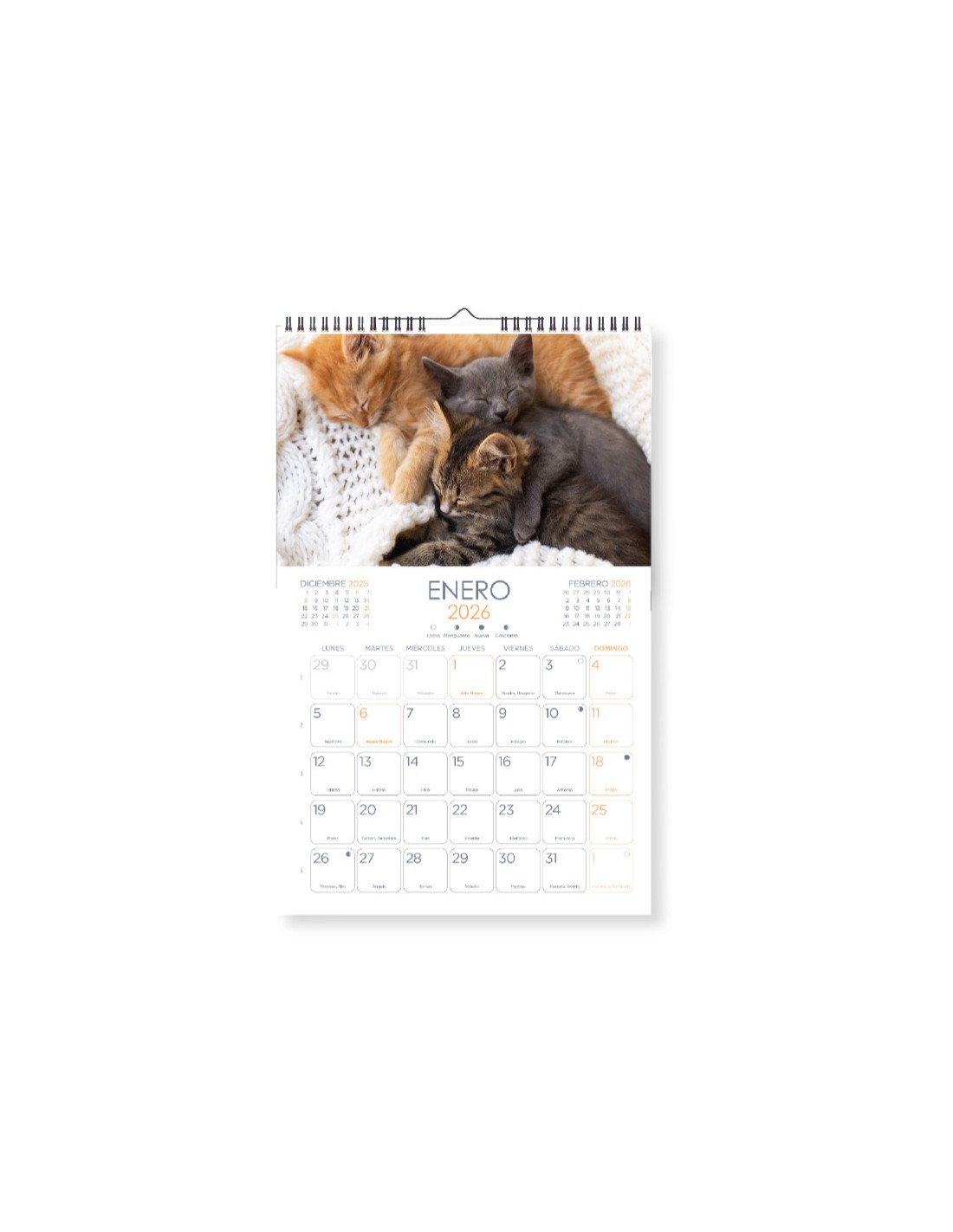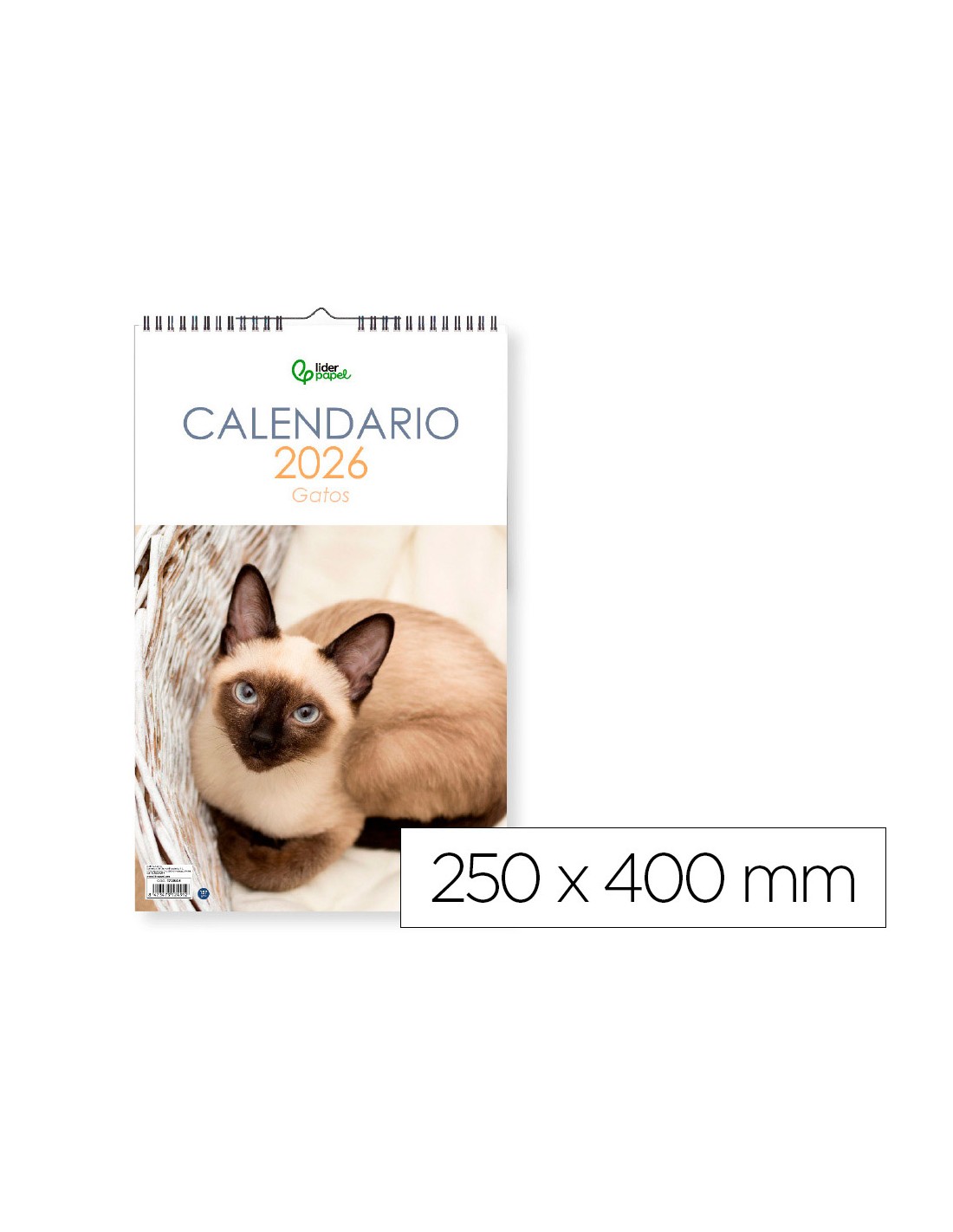 Calendario espiral pared liderpapel imagenes gatos 2026 para escribir 25x40 cm papel 157 gr