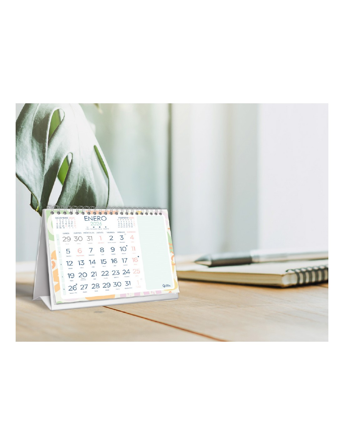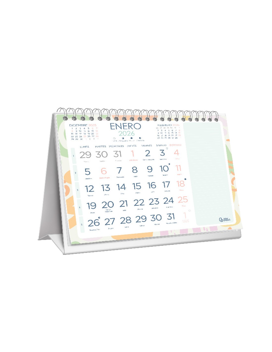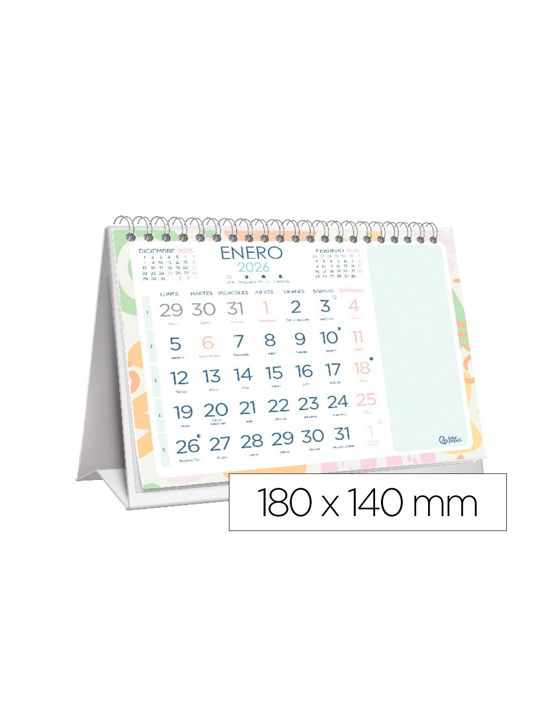 Calendario espiral triangular liderpapel de sobremesa serie joven 2026 18x14 cm papel 128 gr con pegatinas