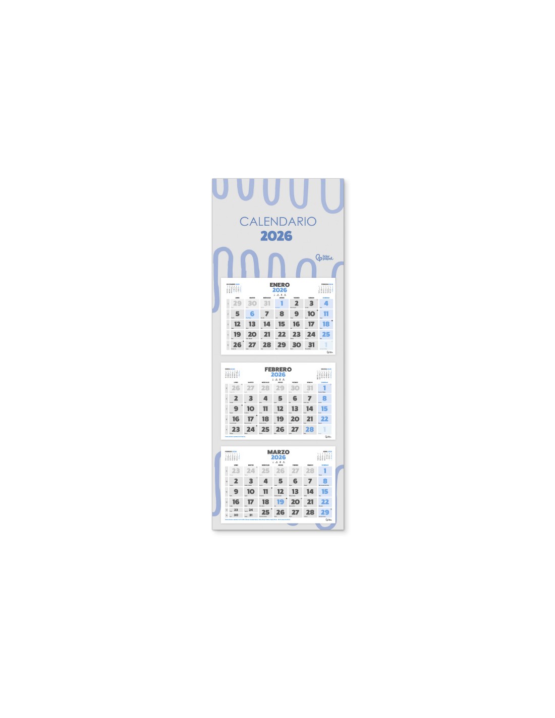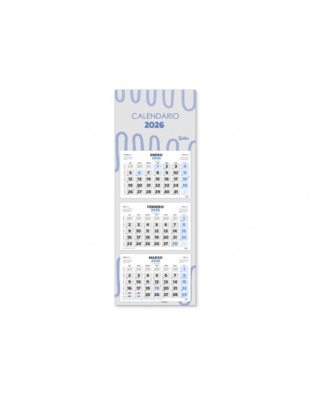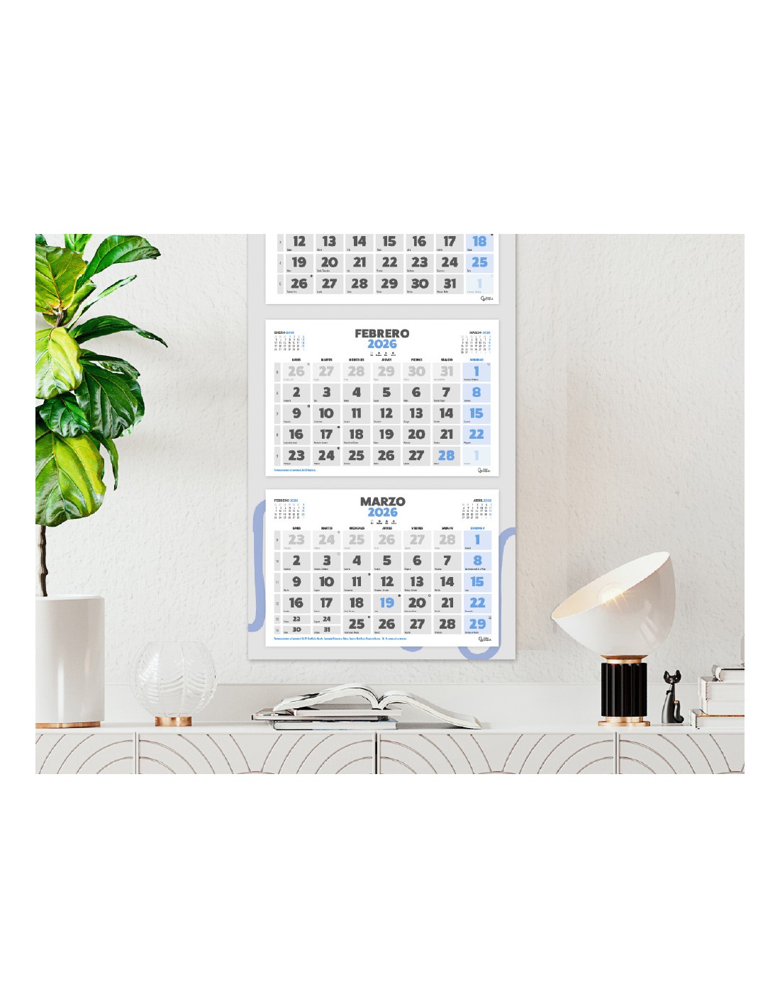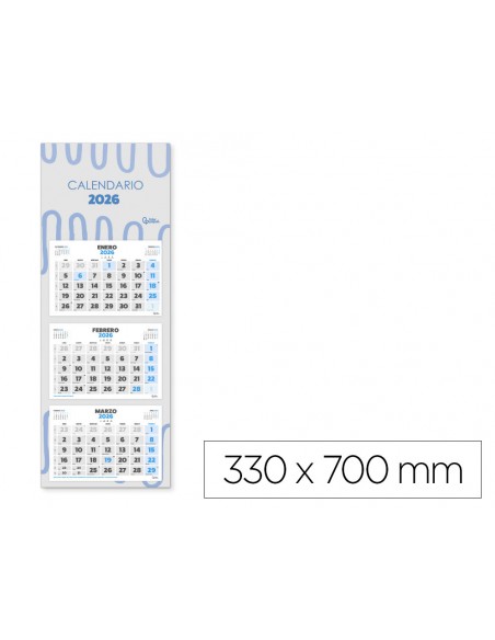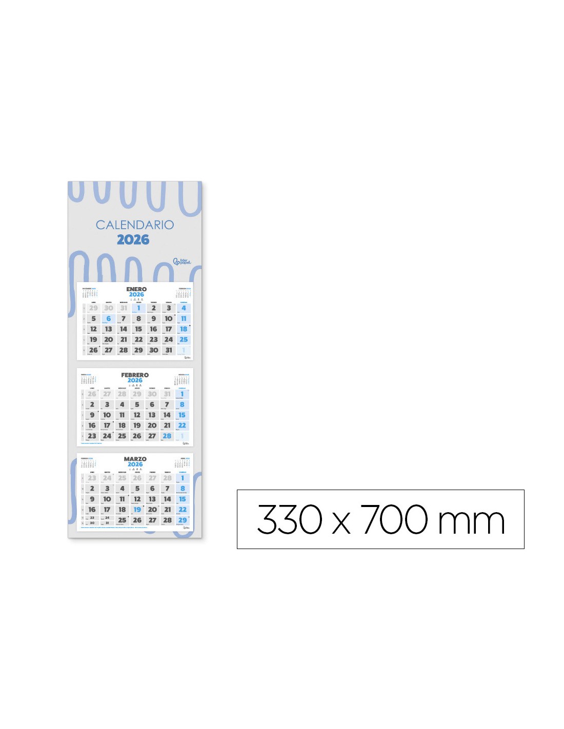 Calendario pared liderpapel 3 meses vistas 2026 plegable 33x70 cm papel 90 gr