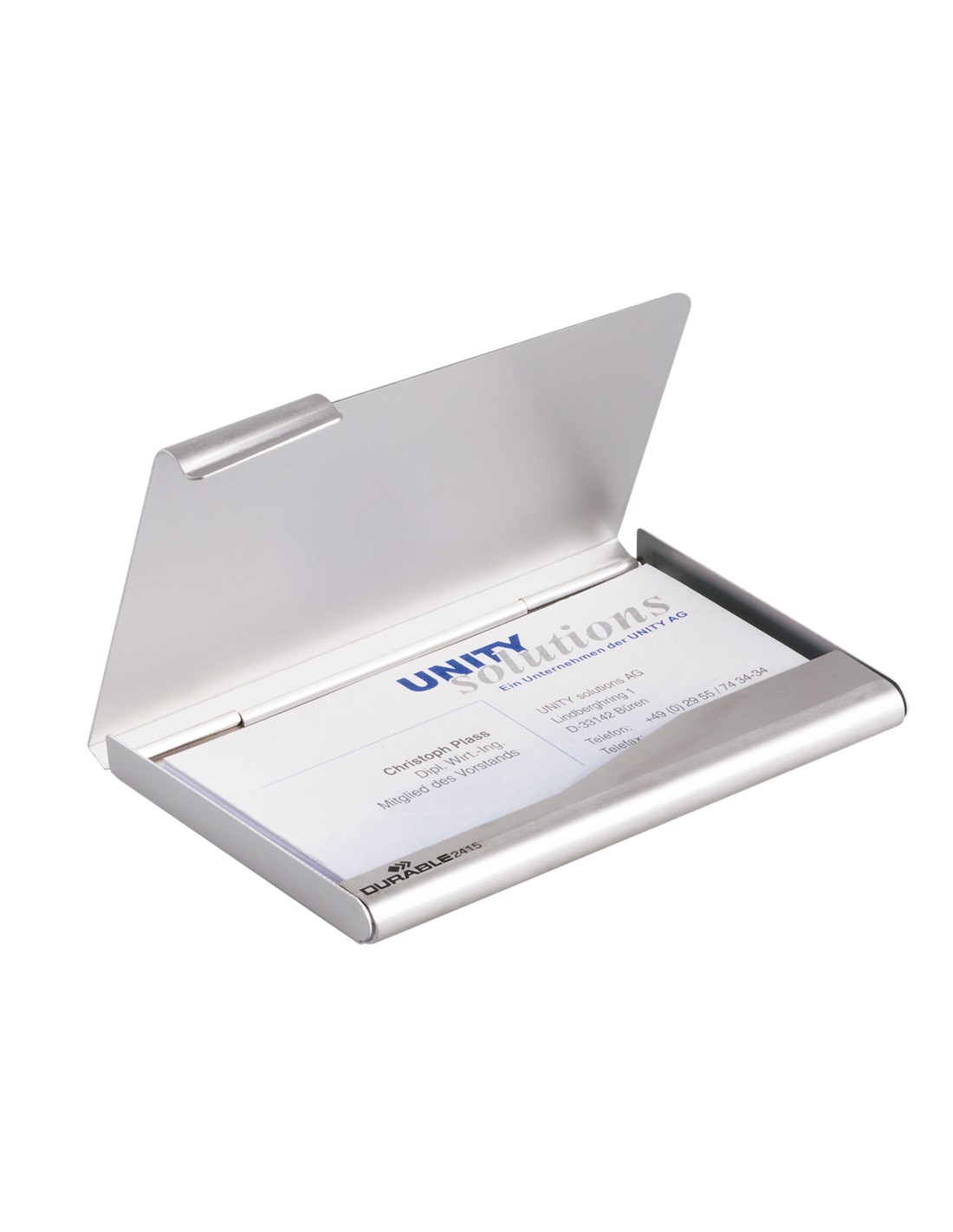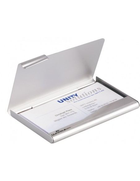 Tarjetero durable aluminio capacidad 20 tarjetas de visitas 55x90 mm color plata 100x65 mm