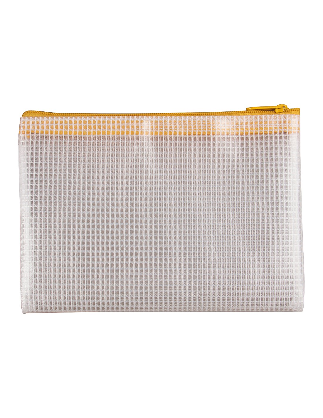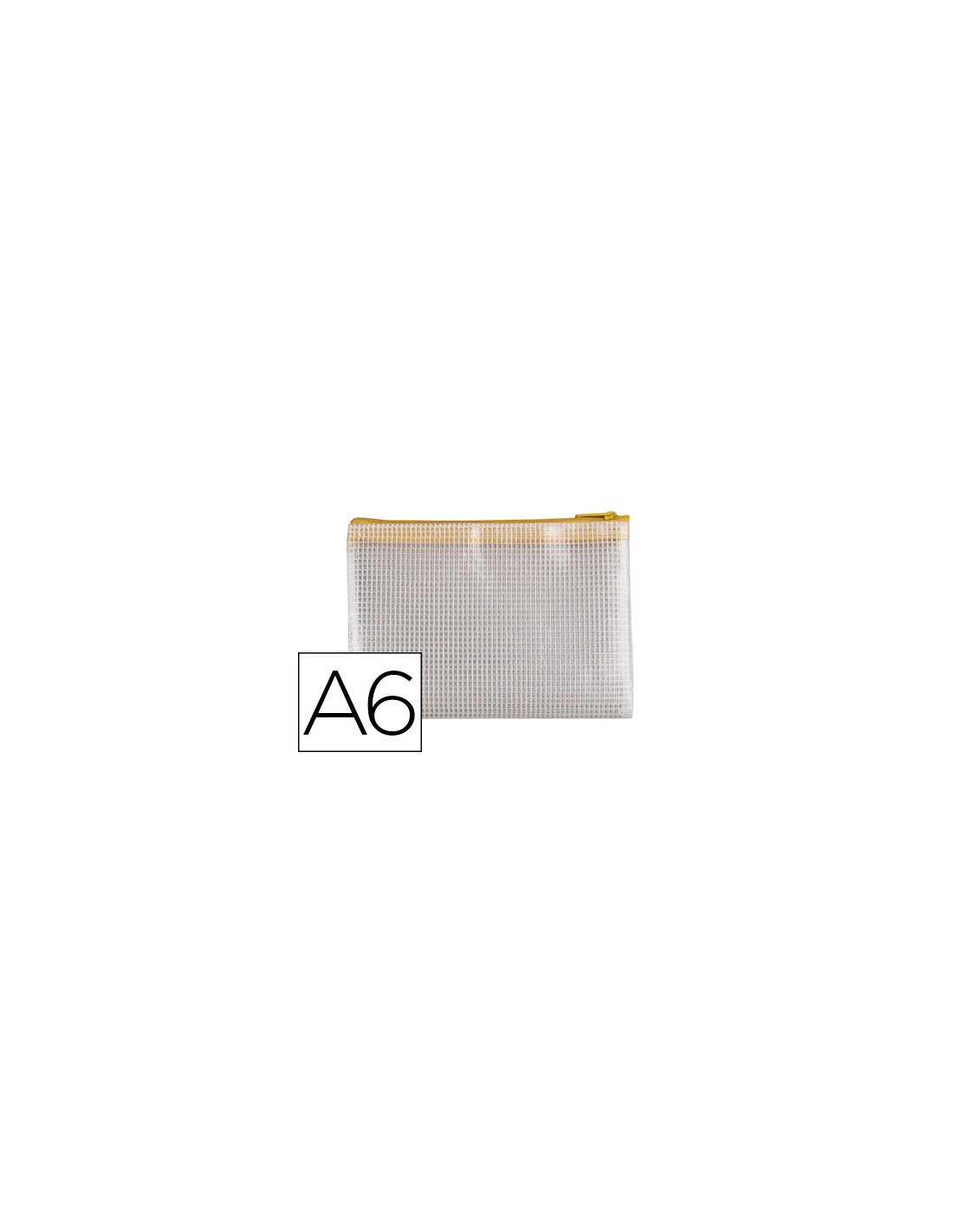 Bolsa multiusos q-connect malla din a6 apertura superior con cremallera amarillo