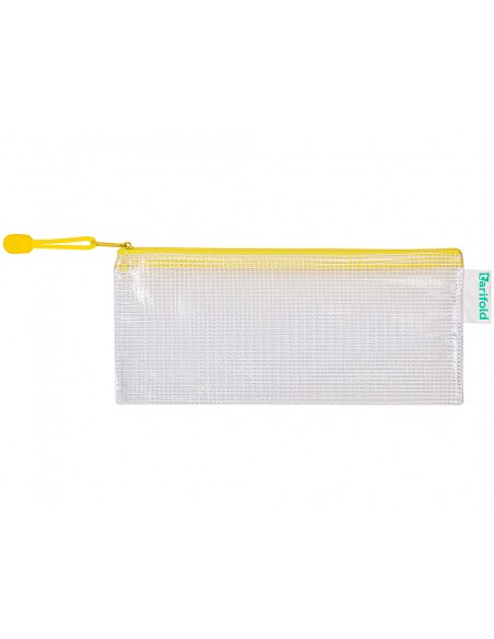 Bolsa multiusos tarifold pvc 250x115 mm apertura superior con cremallera portaboligrafo y correa color amarillo