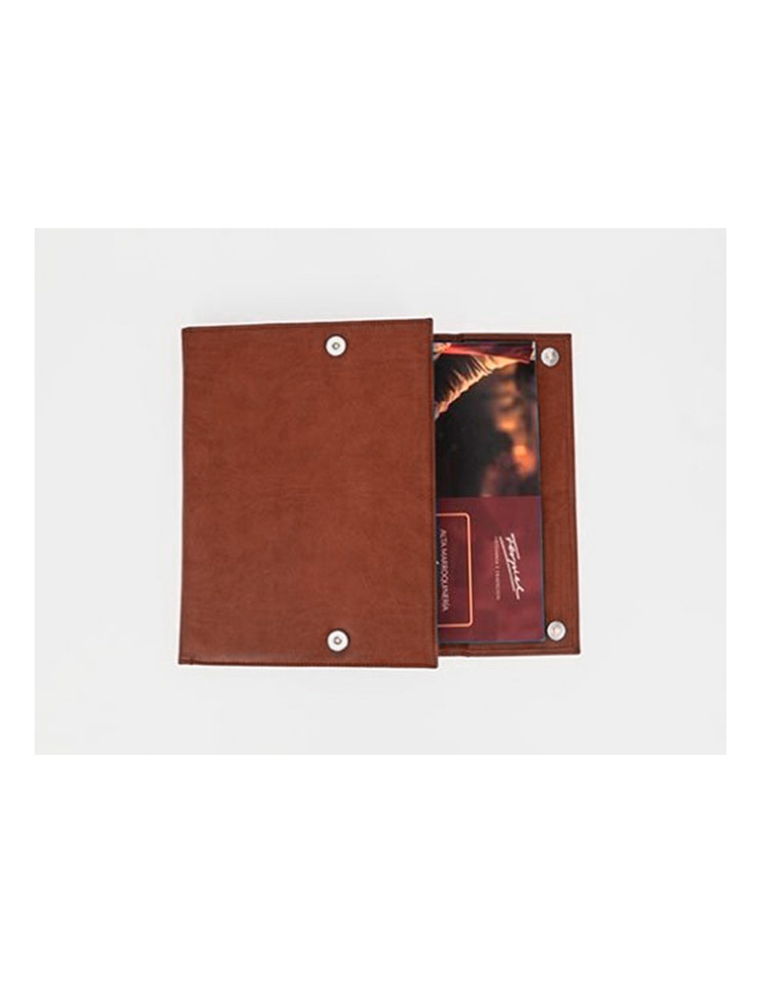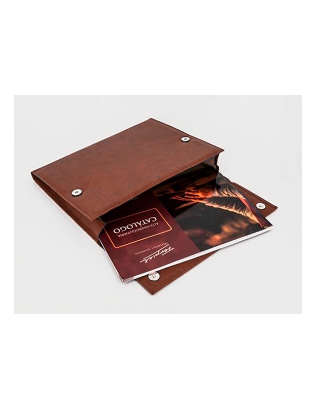 Carpeta portadocumentos q-connect artesania piel sintetica doble cierre iman color cuero 260x235x35 mm